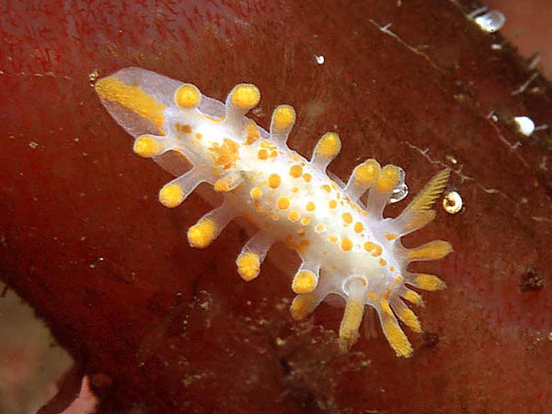 But the strangest and most wonderful creatures in the book might be the sea-slugs and sea-hares, which are brightly coloured or enigmatically mottled, with surreal knobs, furs and “rhinophores”, or head tentacles. If LSD took organic form, it might look like a sea-slug. Greilada elegans, “orange with blue spots”, Flabellina pedata, “purple body and pinkish-red cerata”, Catriona gymnata, “swollen, orange and white-tipped”, resemble the larvae of some eldritch interstellar race, destined to grow great and eat worlds (pp. 218-222 – “cerata” are “dorsal projections”). As it is, they stay tiny: the orange-clubbed sea-slug, Limacia clavigera, gets to 15mm on a diet of bryozoans, the miniature coral-like animals that are Lovecraftian in a different way. That “Limacia”, from the Latin limax, meaning “slug”, is a reminder that sea-slugs have an accurate common name, unlike Montagu’s sea snail, Liparis montagui, and the sea scorpion, Taurulus bubalis, which are both fish, and sea ivory, Ramalina siliquosa, which is a lichen. This book includes a land slug too, the great black, Arion ater, but it has none of the charm or beauty of its marine relatives.