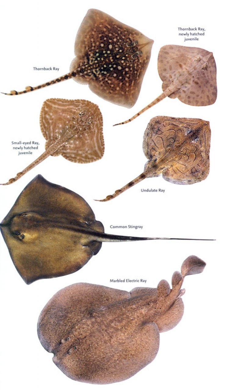 The rays aren’t distorted like that: they lie on their bellies, not on their sides, so their eyes don’t look distorted. Evolution has taken two different routes to the same ecological niche, the sea-floor. Camouflage is useful there, so both rays and flatfish have beautiful patterns: specklings, mottlings and spots. Other fish are colourful, but British fish can’t match the rainbow variety of fish in the tropics. Nor can British birds. The kingfisher, Alcedo atthis, is a rare exception and it “favours fresh waters”, except in winter (pg. 328). Truly coastal birds can be hard to tell apart: the knot, Calidris canutus, and the Sanderling, Calidris alba, are not as distinctive as their common names. Nor are the whimbrel, Numenius phaeopus, and the curlew, Numenius arquata. Both have long down-curved beaks and streaked, “grey-brown plumage” (pg. 342). But the whimbrel is smaller and rarer.