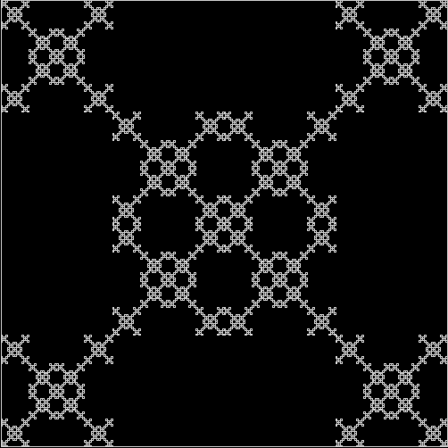 The Latin phrase multum in parvo means “much in little”. It’s a good way of describing the construction of fractals, where the application of very simple rules can produce great complexity and beauty. For example, what could be simpler than dividing a square into smaller squares and discarding some of the smaller squares?
