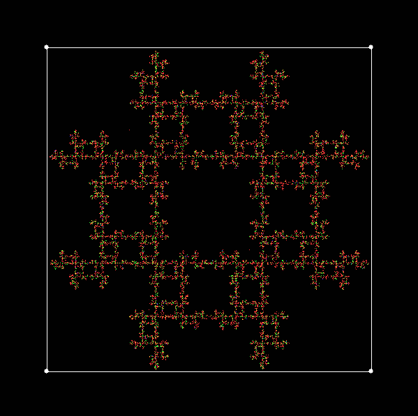 Another permutation of corners creates what I’ve decided to call the crane fractal, like this: