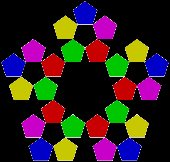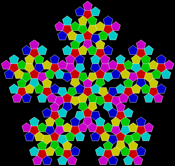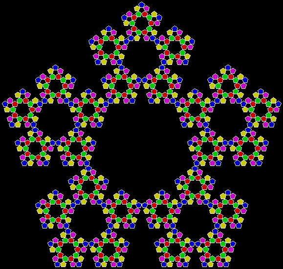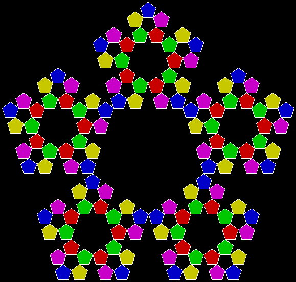 This is another version of the pentaflake, missing the central pentagon of the six used in the standard pentaflake: