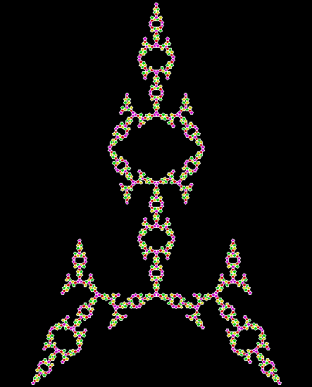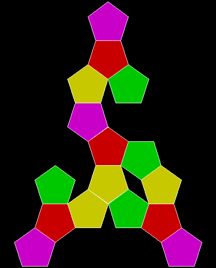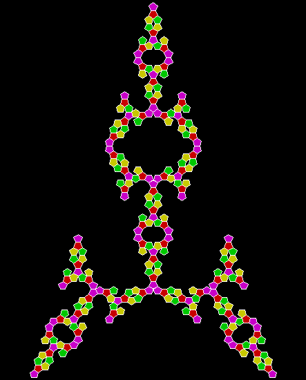 The phrallus, or fractal phallus, begins with an incomplete version of the first stage of the pentaflake (note balls of different colours):