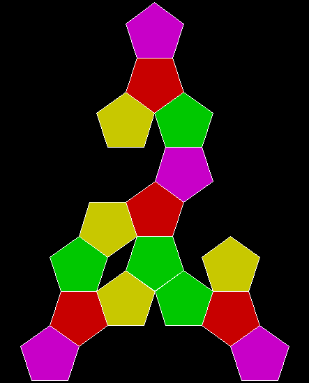 The phrallus, or fractal phallus, begins with an incomplete version of the first stage of the pentaflake (note balls of different colours):