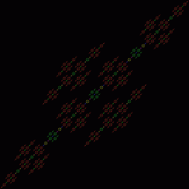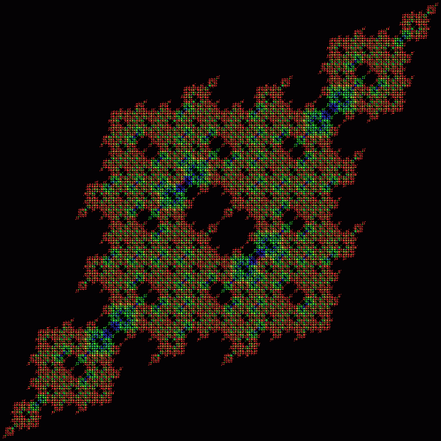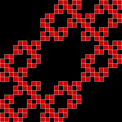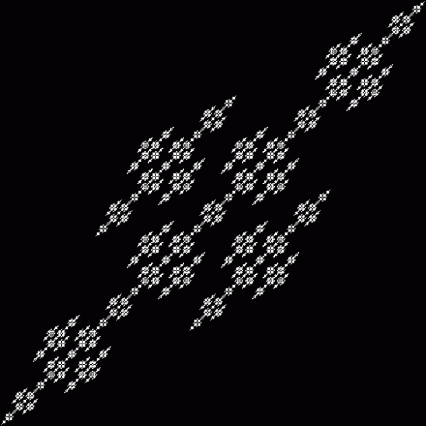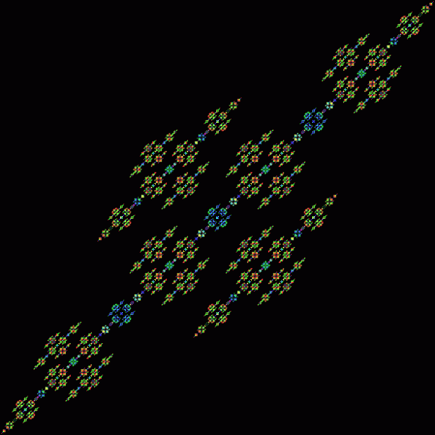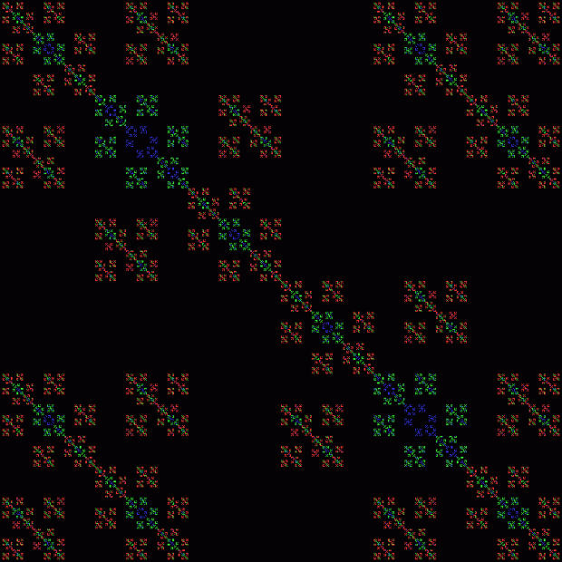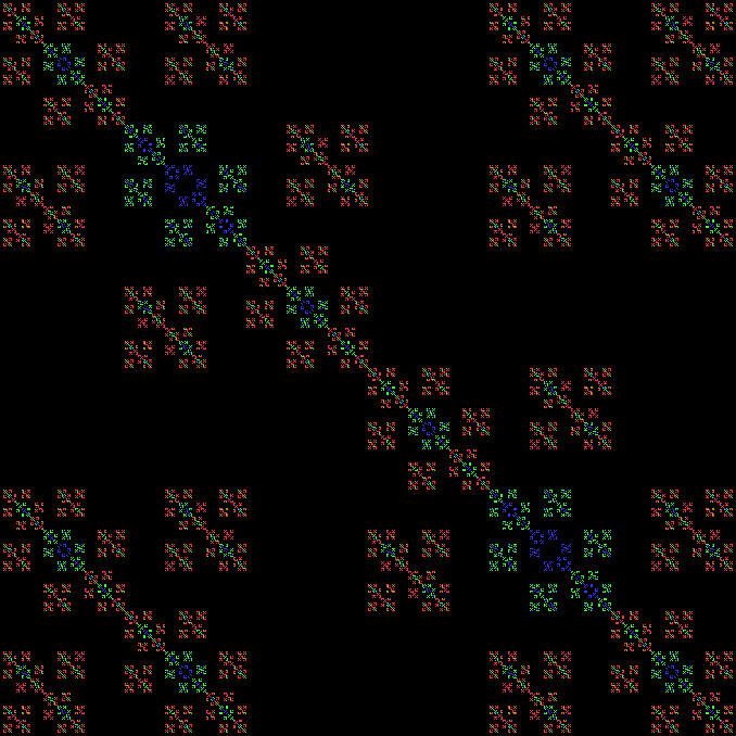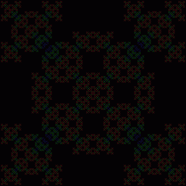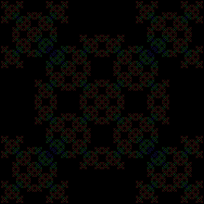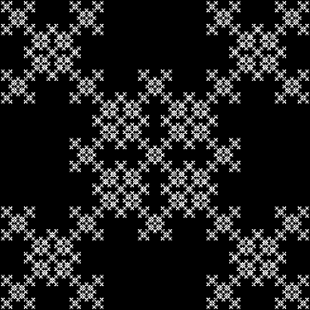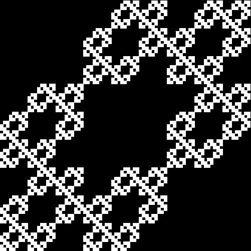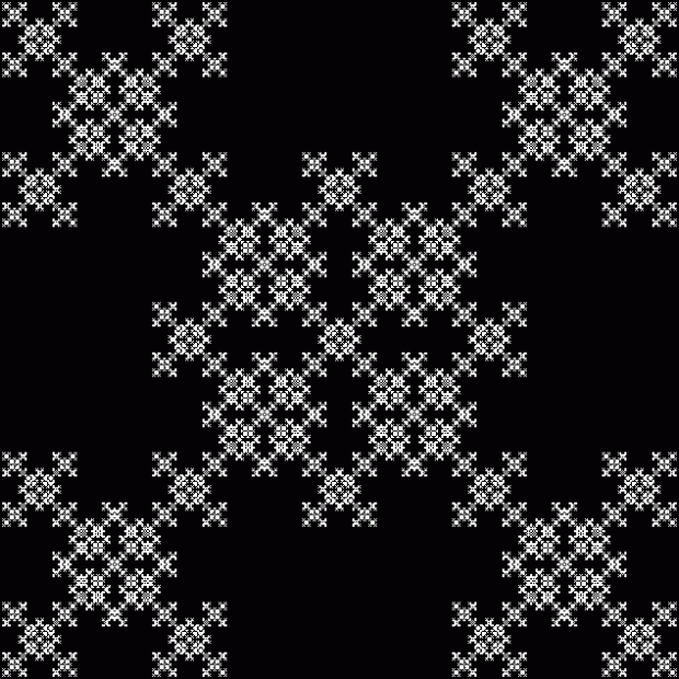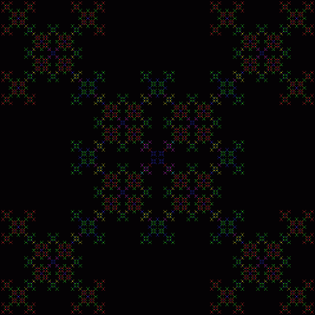 Nor are they boring when they’re caught in the fract. Divide one square into nine smaller copies of itself: