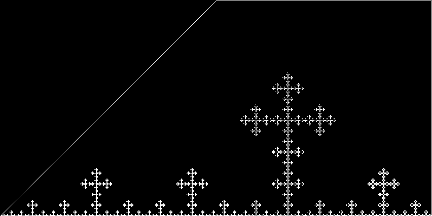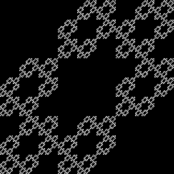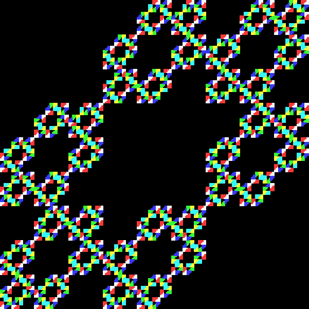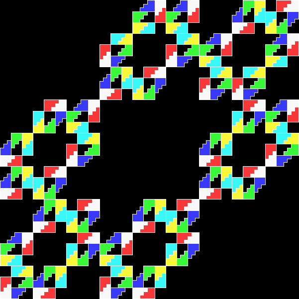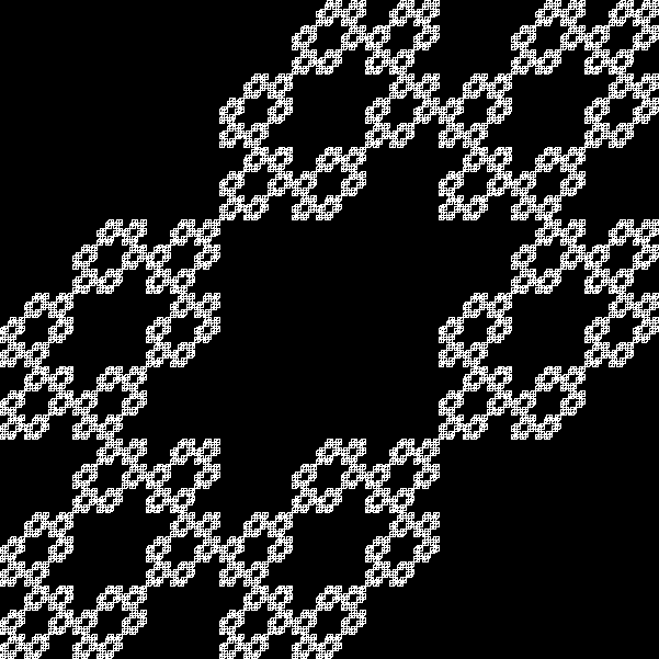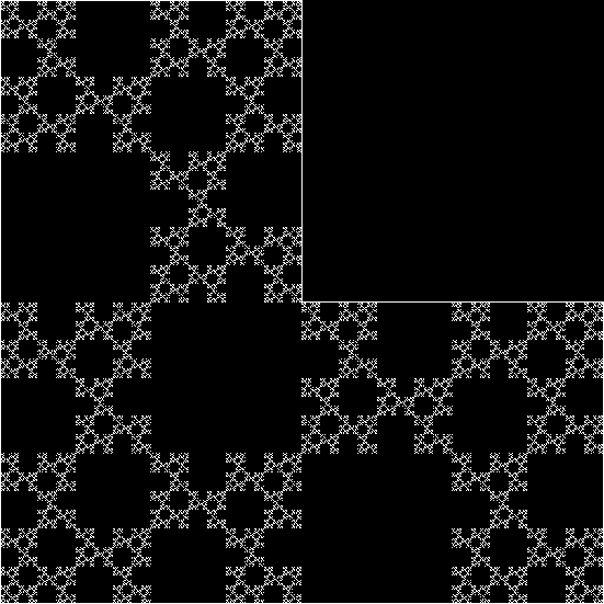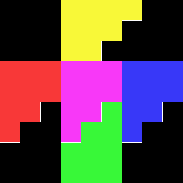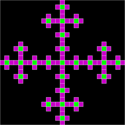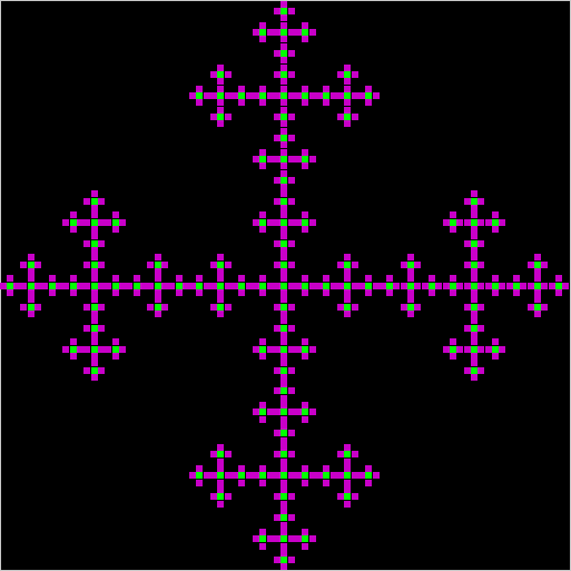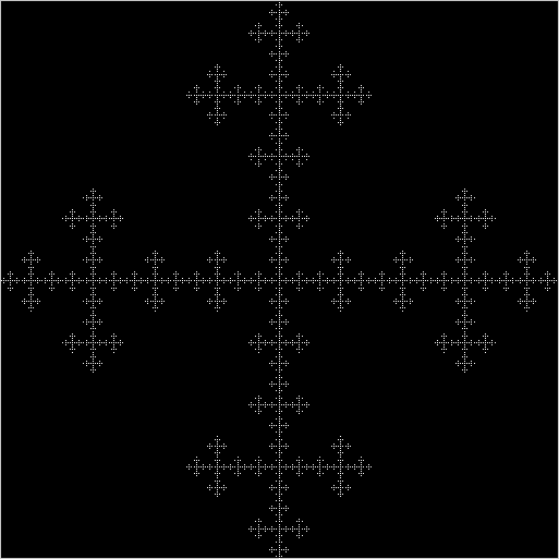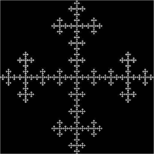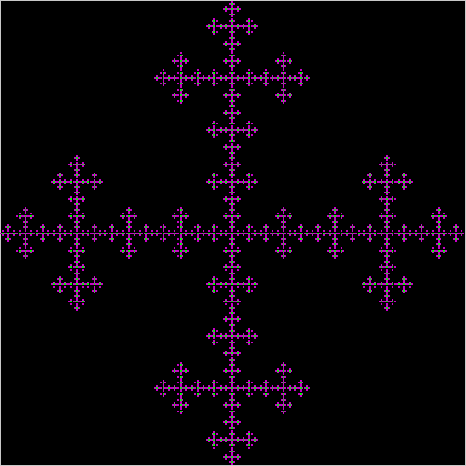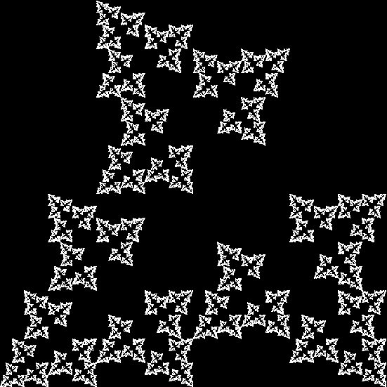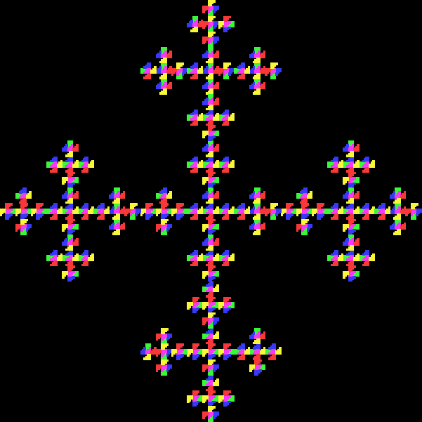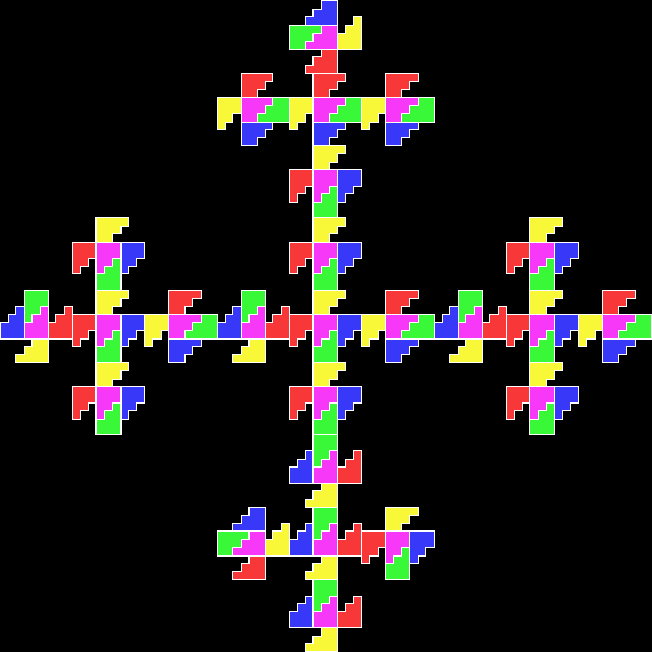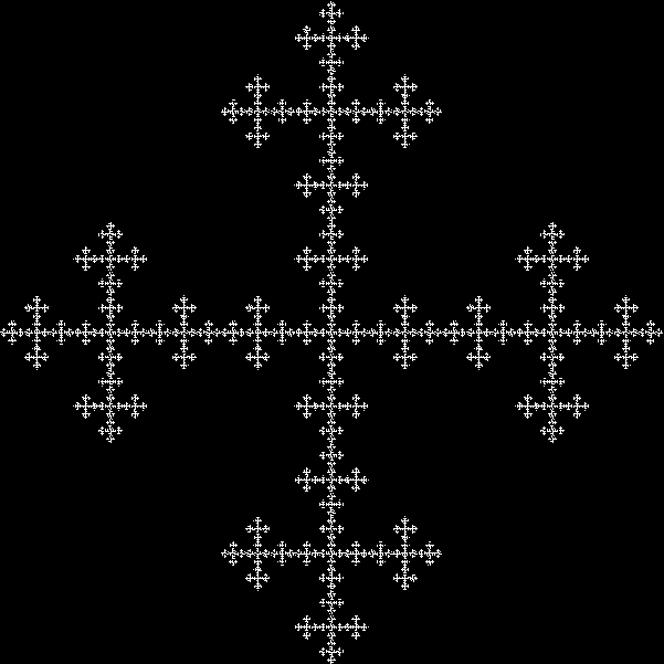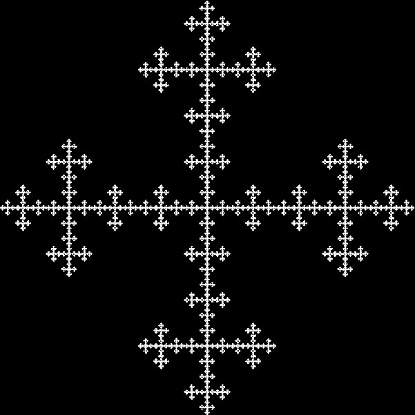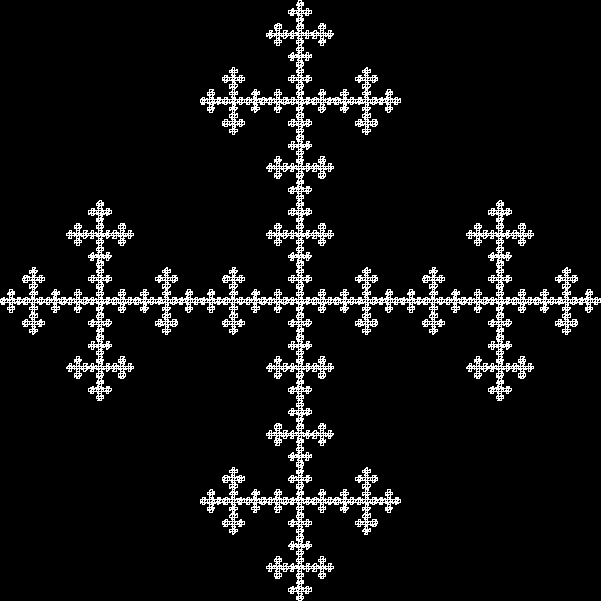 If you trim the copies so that only five are left, you have an asymmetrical seed for a familiar symmetrical fractal: