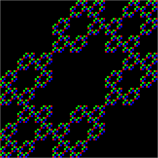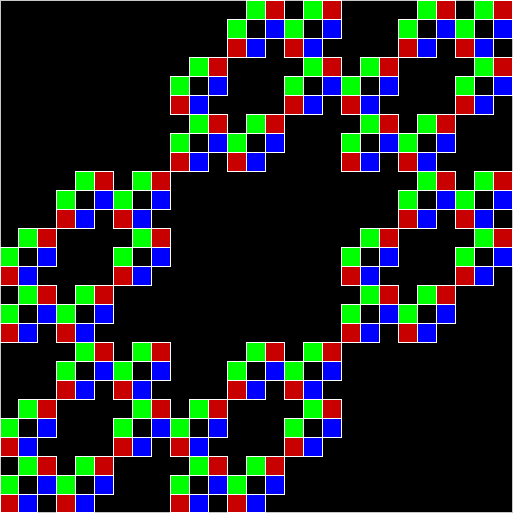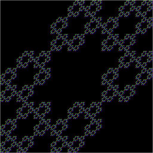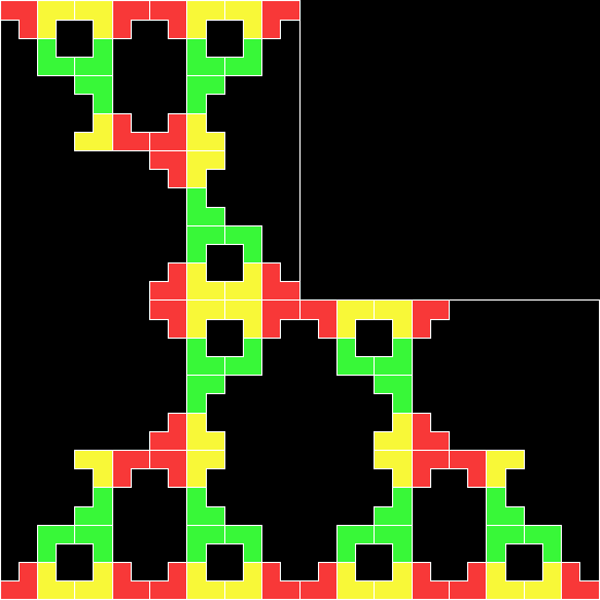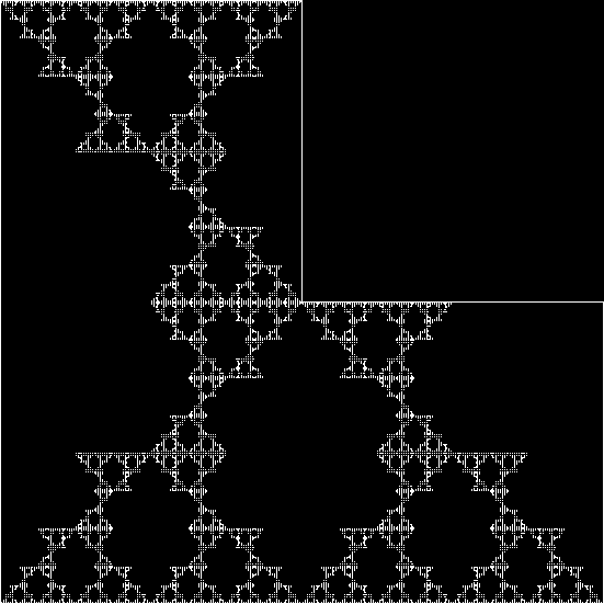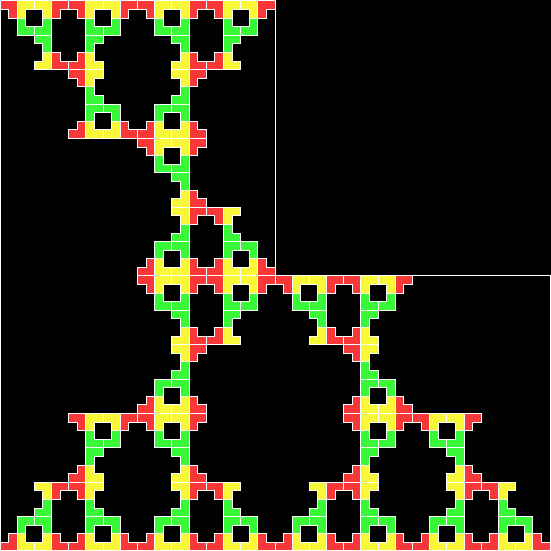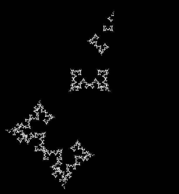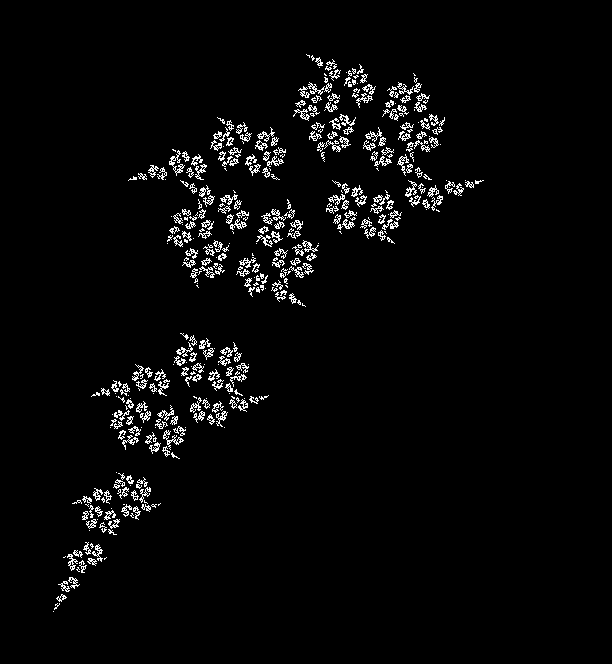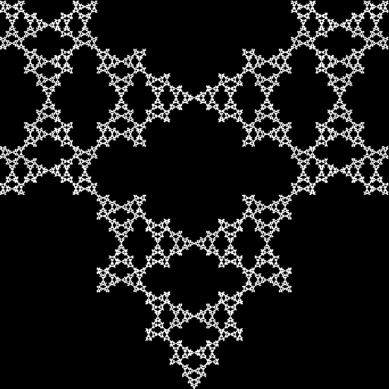 If you trim the copies so that six are left, you have an asymmetrical seed for another familiar symmetrical fractal:
