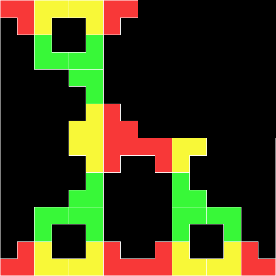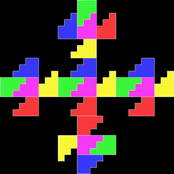 Now here’s an asymmetrical rep-tile, a nonomino or shape created from nine squares joined edge-to-edge: