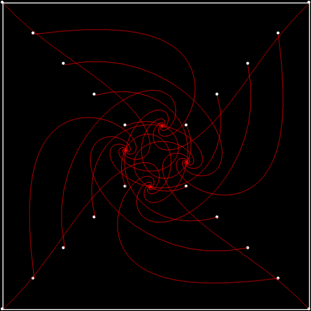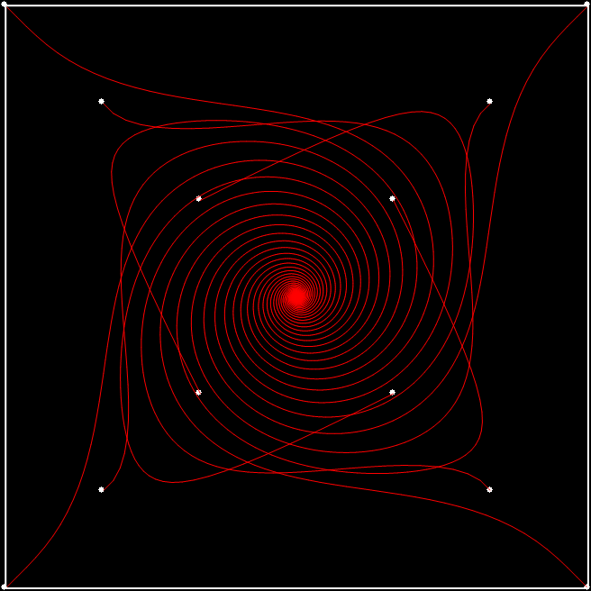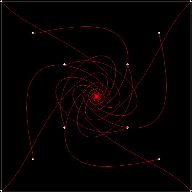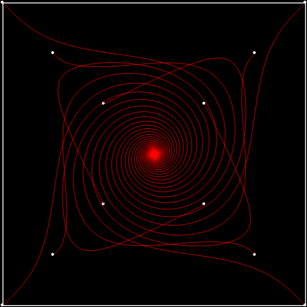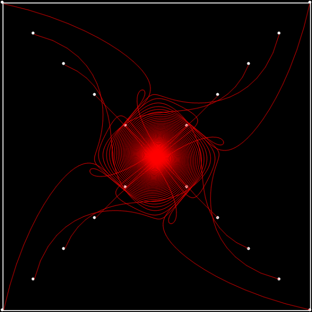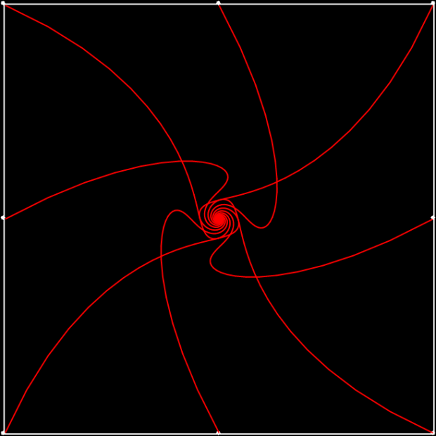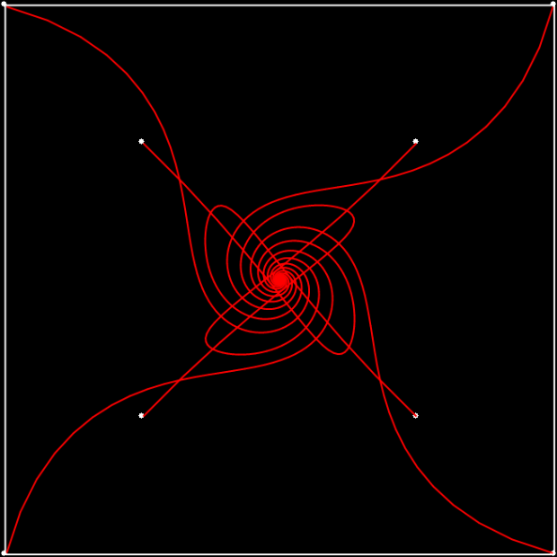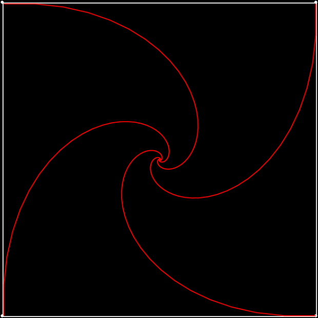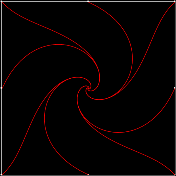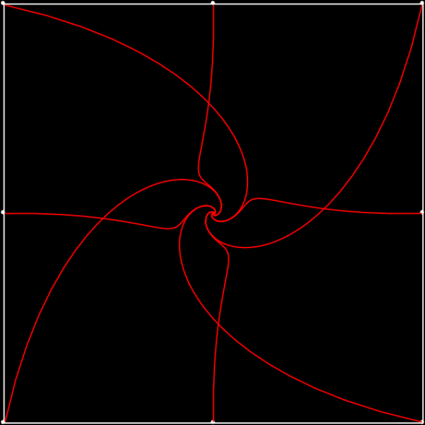 Twice before on Overlord-in-terms-of-Core-Issues-around-Maximal-Engagement-with-Key-Notions-of-the-Über-Feral, I’ve interrogated issues around pursuit curves. Imagine four mice or four beetles each sitting on one corner of a square and looking towards the centre of the square. If each mouse or beetle begins to run towards the mouse or beetle to its left, it will follow a curving path that takes it to the centre of the square, like this: