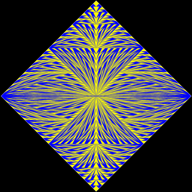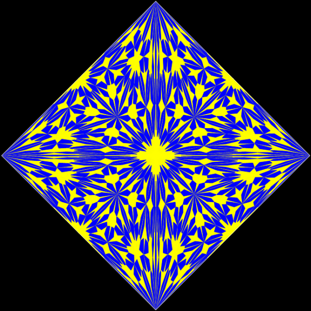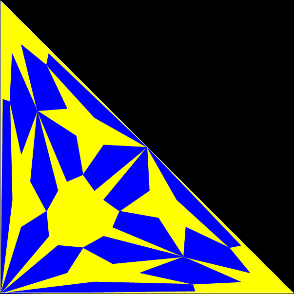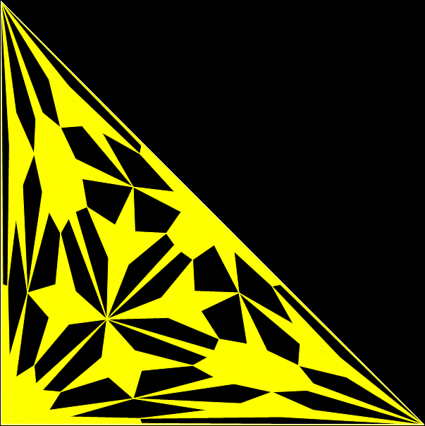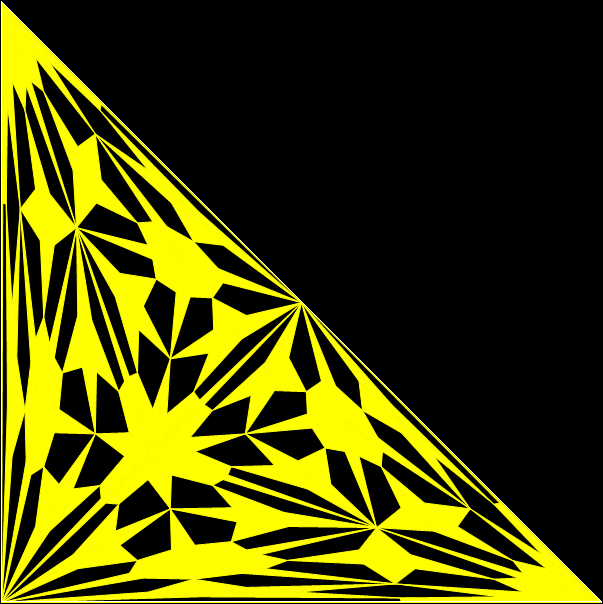 With simple adjustments, the program can be used for other shapes whose underlying structure can be represented symbolically as a tree. The program is in fact a fractalizer, that is, it draws a fractal. So if you use a version of the program to draw fractals based on right-triangles, you can say you are “tright treeing” (tright = triangle-that-is-right).