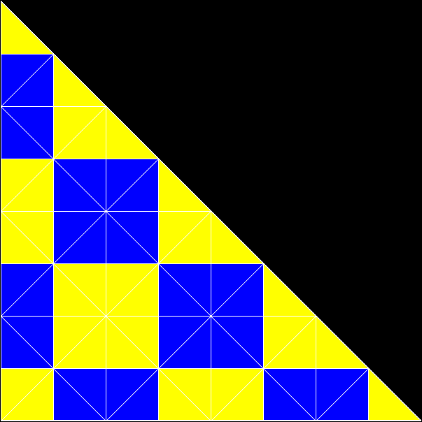 Here’s a different right-triangle. When you divide it regularly, it looks like this: