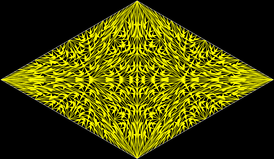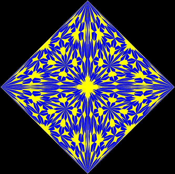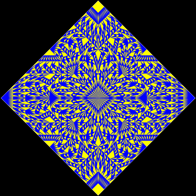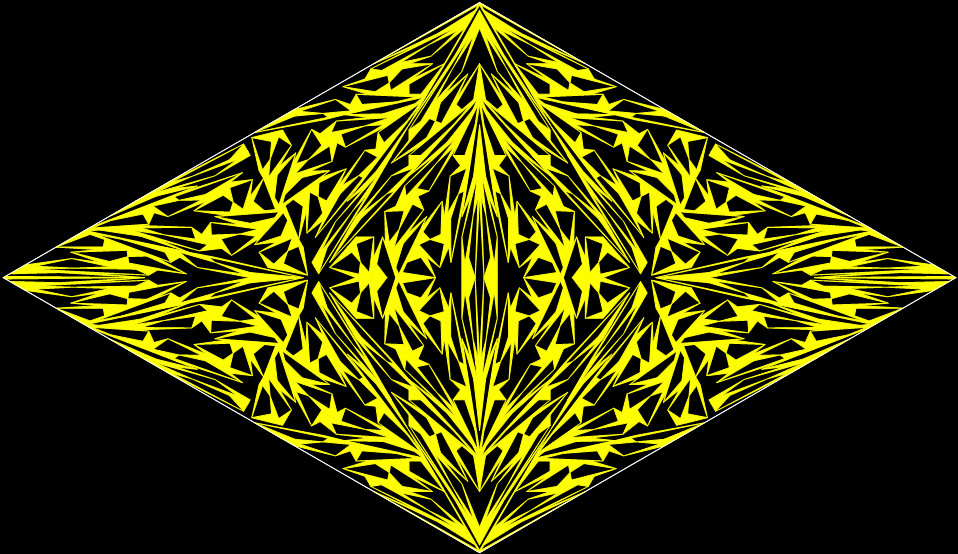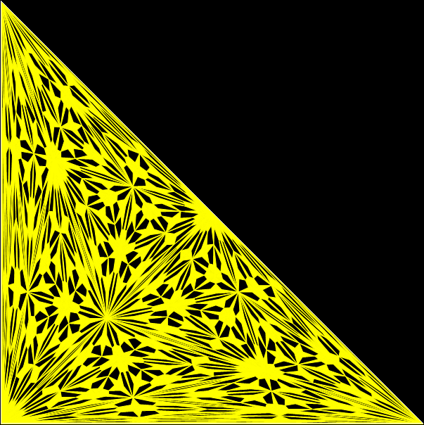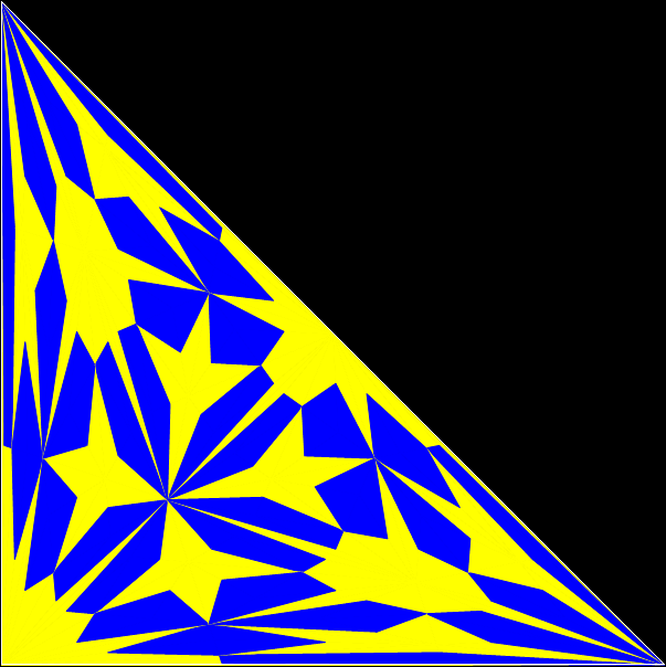 With simple adjustments, the program can be used for other shapes whose underlying structure can be represented symbolically as a tree. The program is in fact a fractalizer, that is, it draws a fractal. So if you use a version of the program to draw fractals based on right-triangles, you can say you are “tright treeing” (tright = triangle-that-is-right).