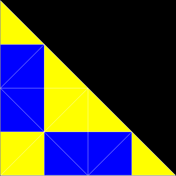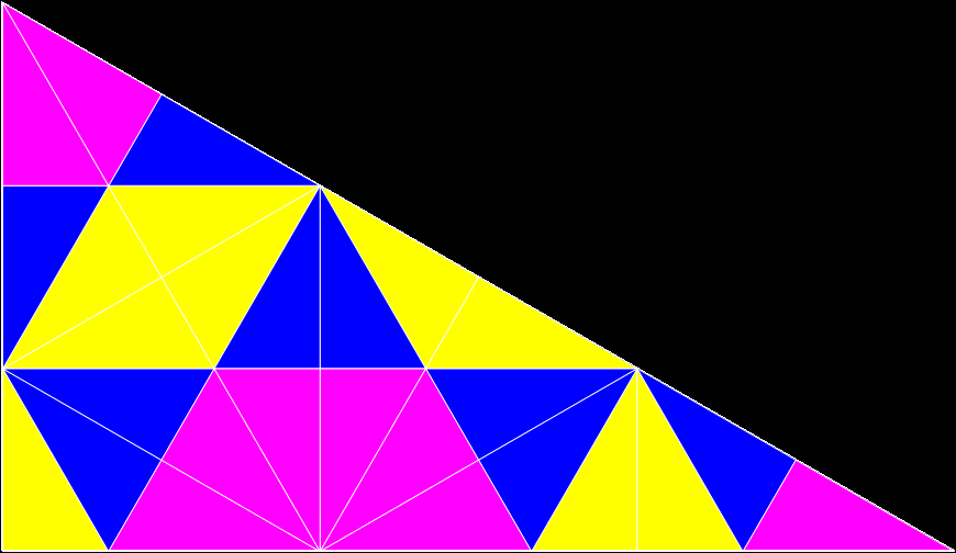 Here’s a different right-triangle. When you divide it regularly, it looks like this: