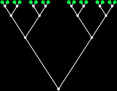 By changing the value of f, a computer can use those eleven basic instructions to draw any size of tree (I’ve left out details like changes in the length of branches and so on). When f = 4, the tree will look like this: