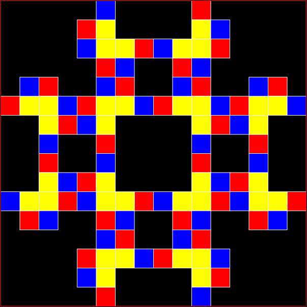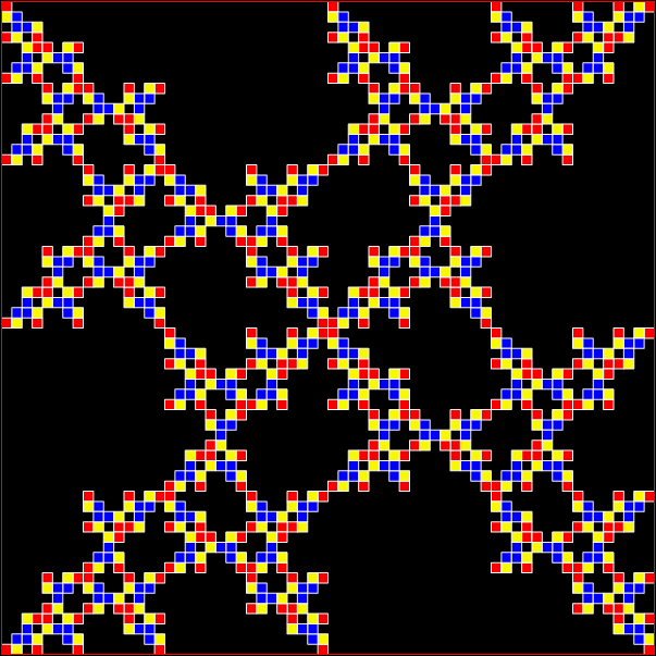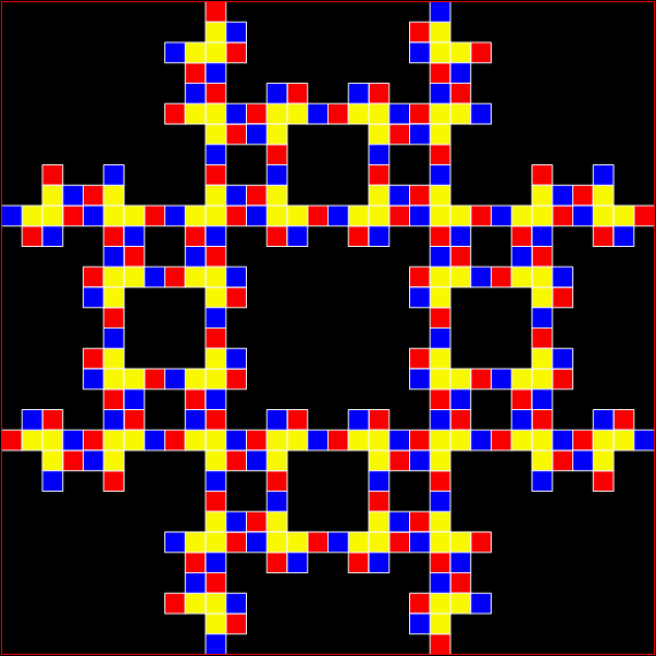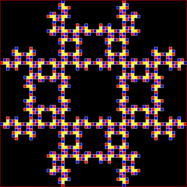 Now full Koch snowflakes have appeared inside the diamond — count ’em! I see seven full ’flakes: