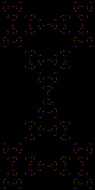 Next I wanted to create an hourglass fractal from a rep-16 L-tromino, so I reasoned like this: