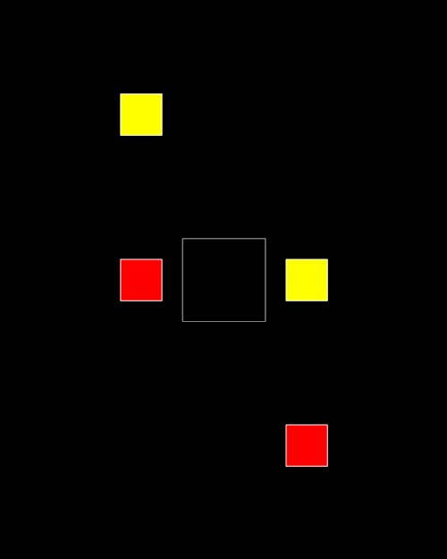Nothing interesting can emerge from that set of squares. Or can it? As I showed in Curvous Energy, it can. Suppose that the gray square is dividing into the colored squares like a kind of amoeba. And suppose that the colored squares divide in their turn. So square divides into sub-squares and sub-squares divide into sub-sub-squares. And so on. And all the squares keep the same relative orientation.