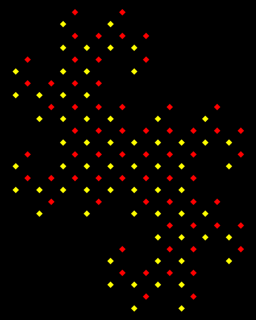 And dragon-curves, at various angles and in various sizes, emerge from every other possible pair of sub-squares: