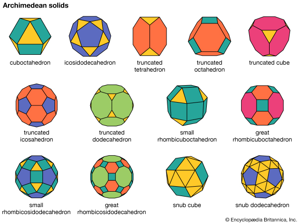 The 13 Archimedean solids (also known as Archimedean polyhedra)