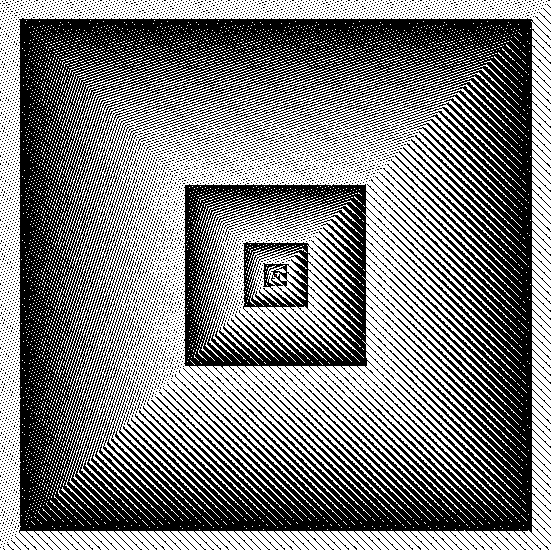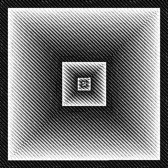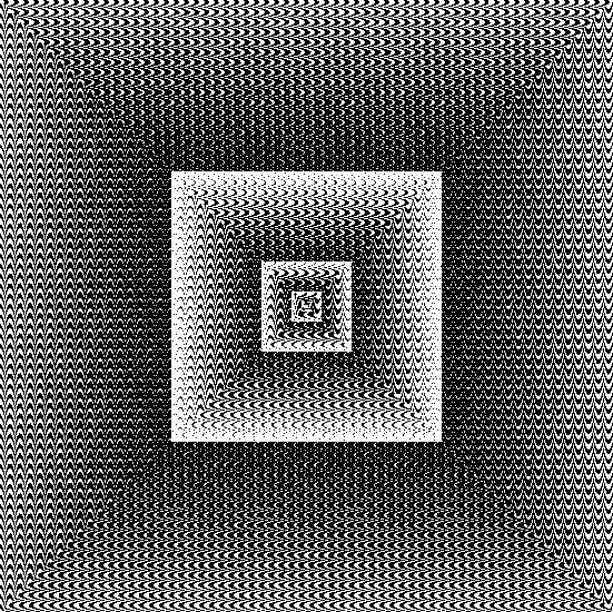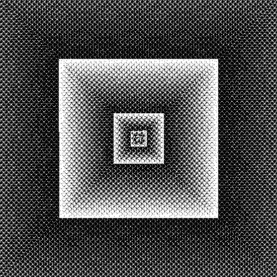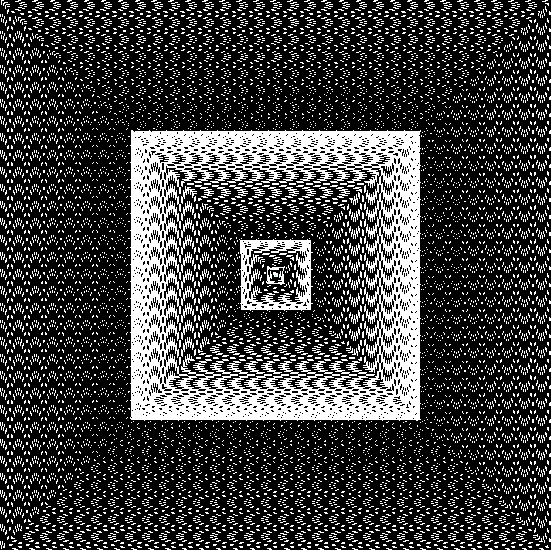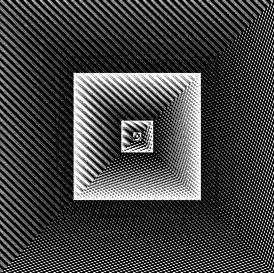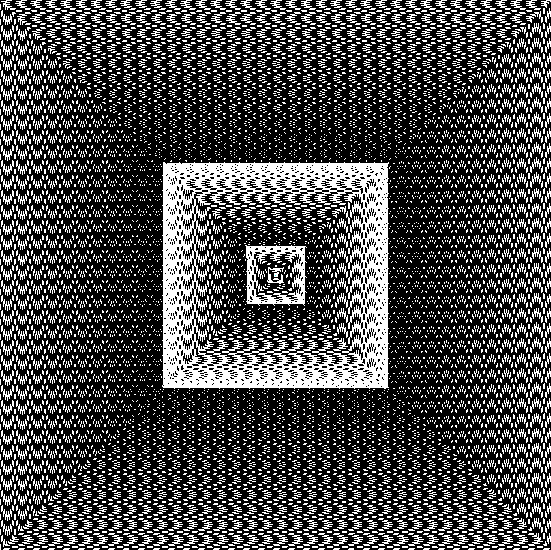 If n = r, n is a palindrome. If n > r, I call n a major number. If n < r, I call n a minor number. And here are the minor and major numbers represented as white squares on an Ulam-like spiral (the negative of a minor spiral is a major spiral, and vice versa — sometimes one looks better than the other):