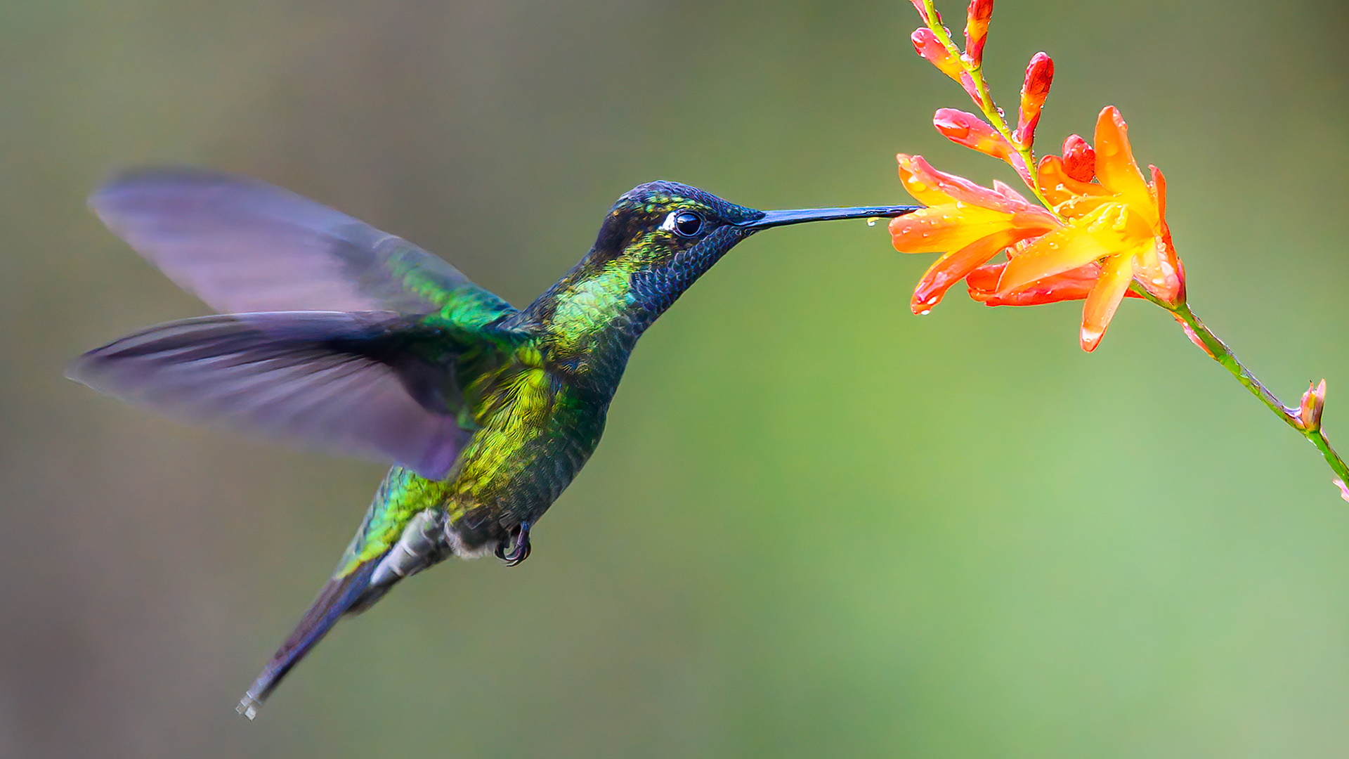Long-tailed Sylph, Aglaiocercus kingii, in the Colombian rain-forest (from LiveScience)