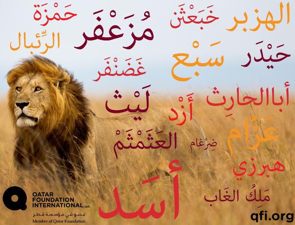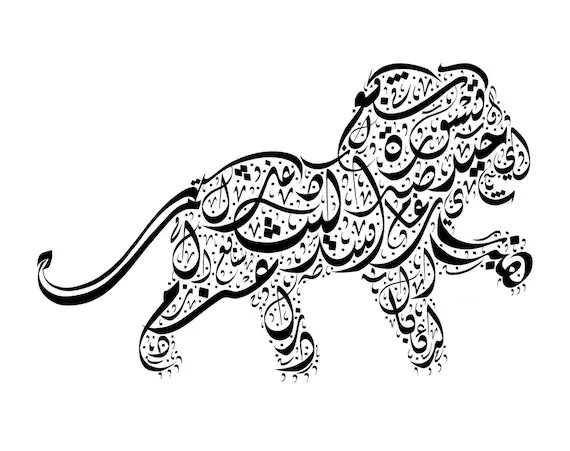 Arabic calligraphy using words for lion (image from Etsy)