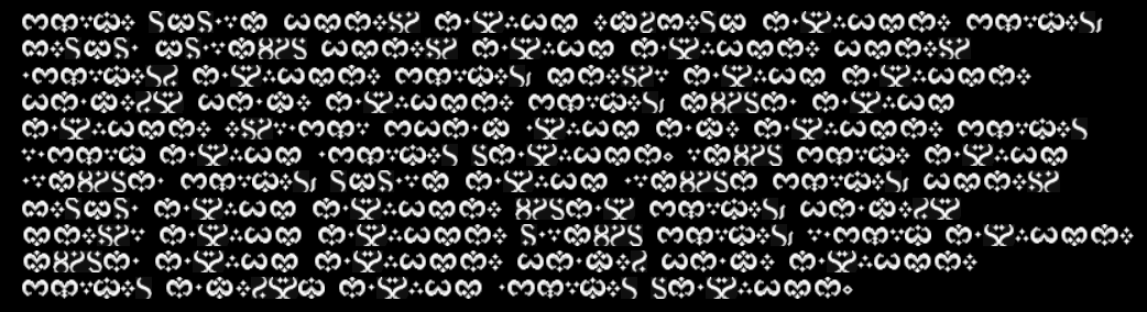 Odoric will have innumerable and often mutually unintelligible dialects falling into three main families: Coniferous Odoric, as used by conifers; Deciduous Odoric, as used by non-coniferous deciduous trees; and Floral Odoric, as used by flowers. Its native written form will evolve late and be based on chemical markers laid down within leaves and roots as a mnemonic for individual trees. In this form, it cannot be represented directly by a script suitable for human eyes, but Odoric will also be written by a non-plant species: an advanced race of intelligent squirrel that will discover and transcribe the language about 28,000,000 years in the future. This Sciurine (Squirrel) Odoric is presented here in one of its several forms.