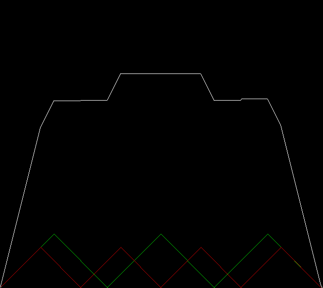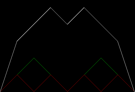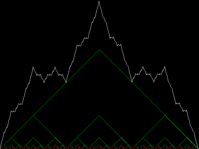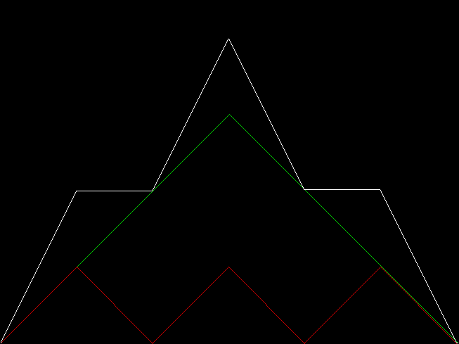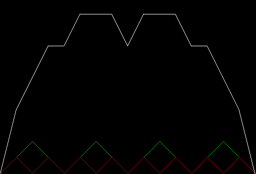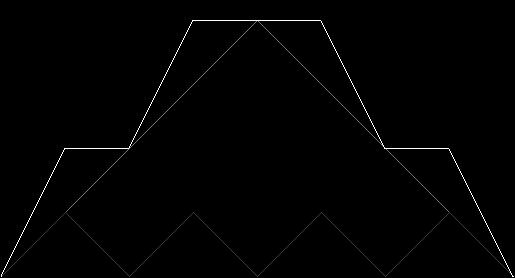 In successive zigzags, the number of zags doubles as their height halves, i.e. z(i) = z(i-1) * 2, h(i) = h(i-1) / 2. If all the zigzags are represented at once, the construction looks like this: