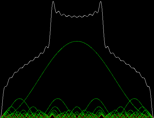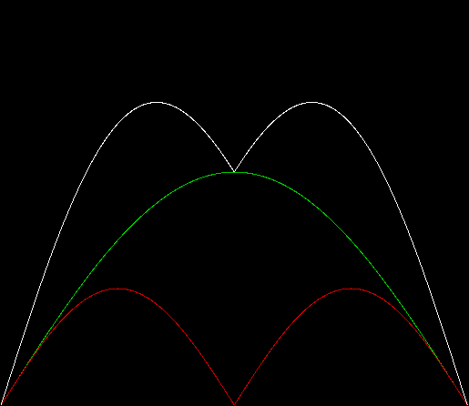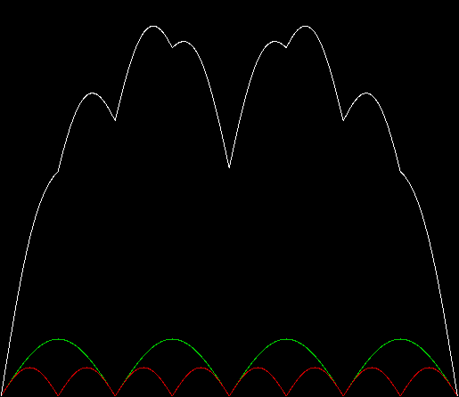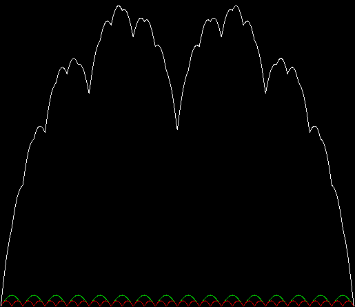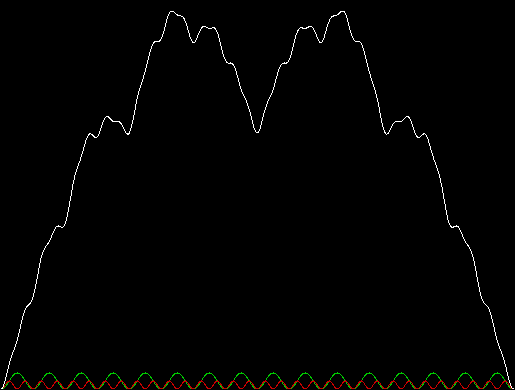 And here are blancmange curves summing a series of humps rather than zigzags: