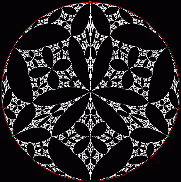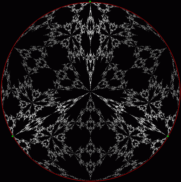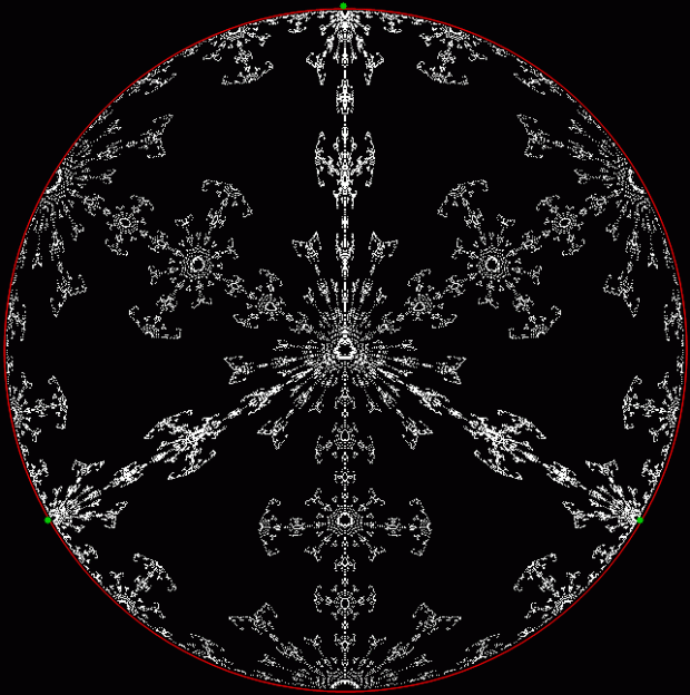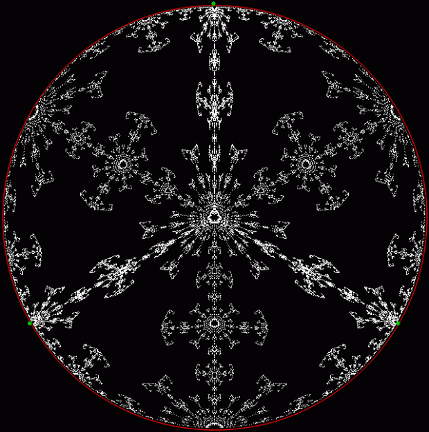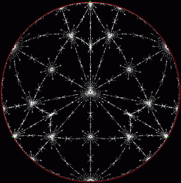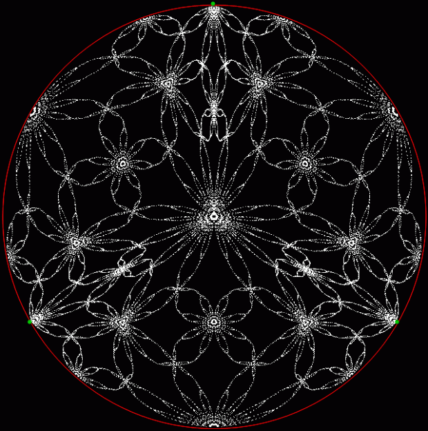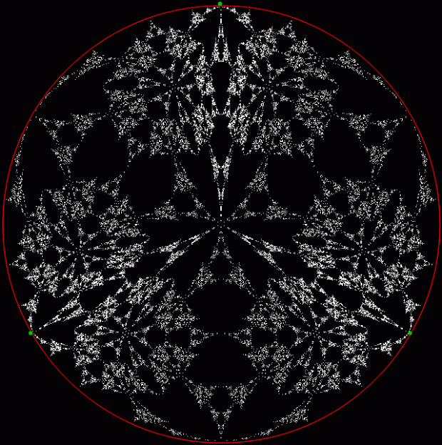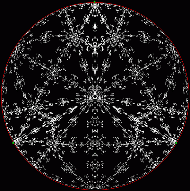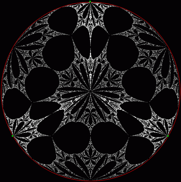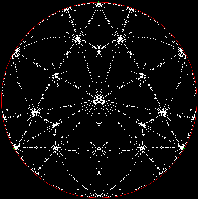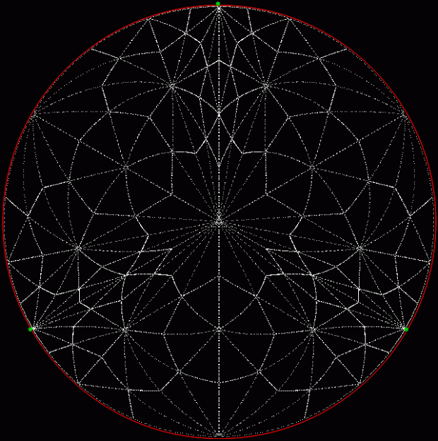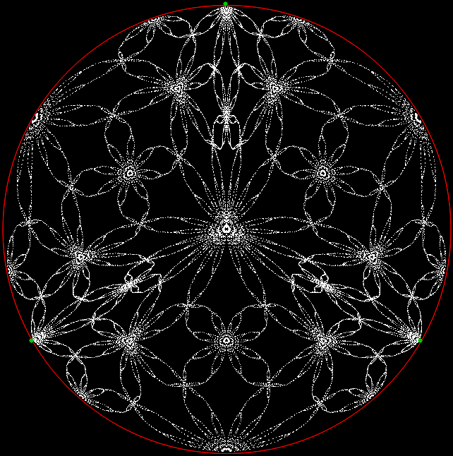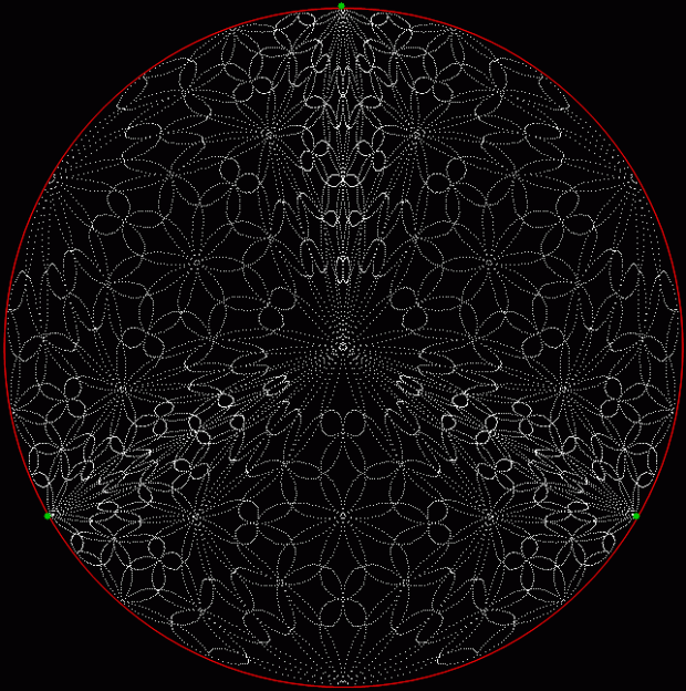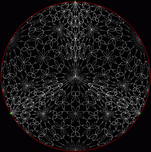 But I prefer, for further peers through the period-panes, to create the period-panes using remainders rather than digits. That is, the number of points around the circle is determined by the prime itself rather than the base in which the reciprocal is calculated: