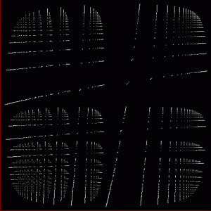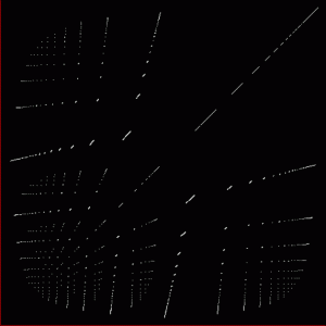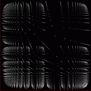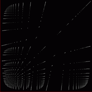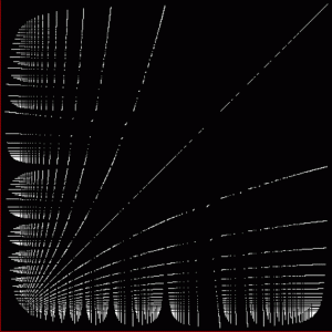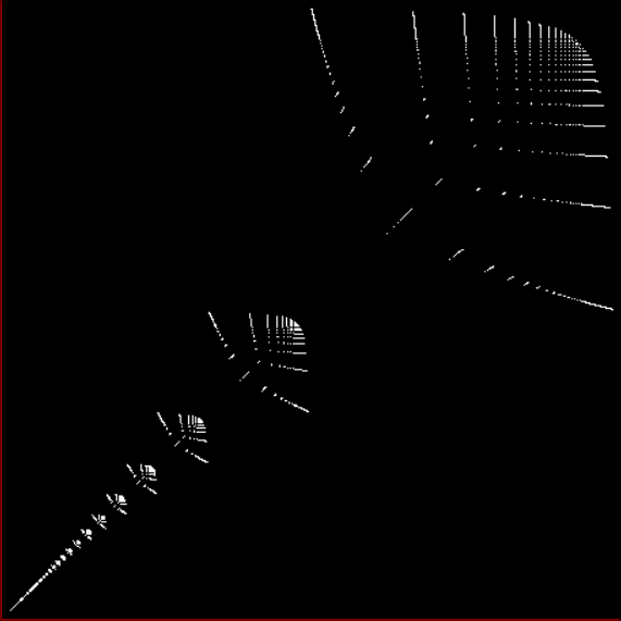 The x axis represents simplified fractions, a/b, when len(cf(a/b)) = 4. The y axis represents the fractions found by applying the perm [1,3,2,4] to contfrac(a/b). That is, the first number of the contfrac stays where it is, the third number moves to position 2, the second number moves to position 3 and the fourth number stays where it is. In short, you simply swap the middle two numbers of contfrac(a/b). Here’s an example: