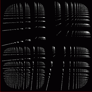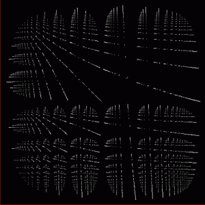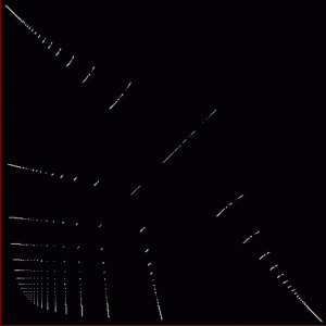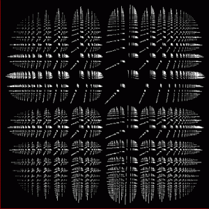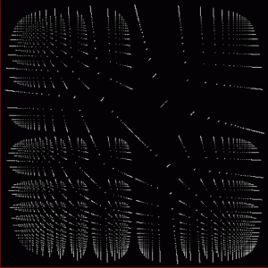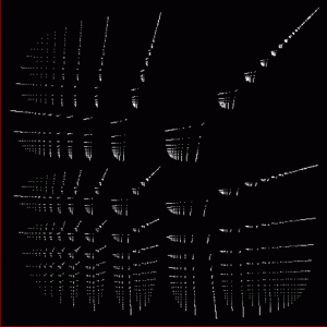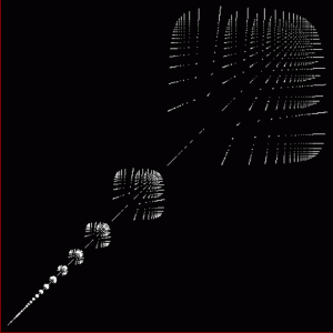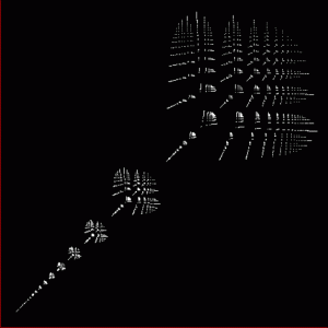 If you perm the worm in other ways, you get other shapes on the fract-L. I looked at continued fractions of fixed length, 4, 5 and 6, and permed them using one of the permutations of [1,2,3,4], [1,2,3,4,5] and [1,2,3,4,5,6]. Here’s a graph for fractions, a/b, and permed fractions, perm(a/b), where length(contfrac(a/b)) = 4: