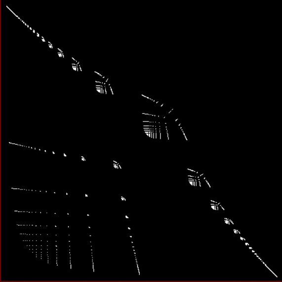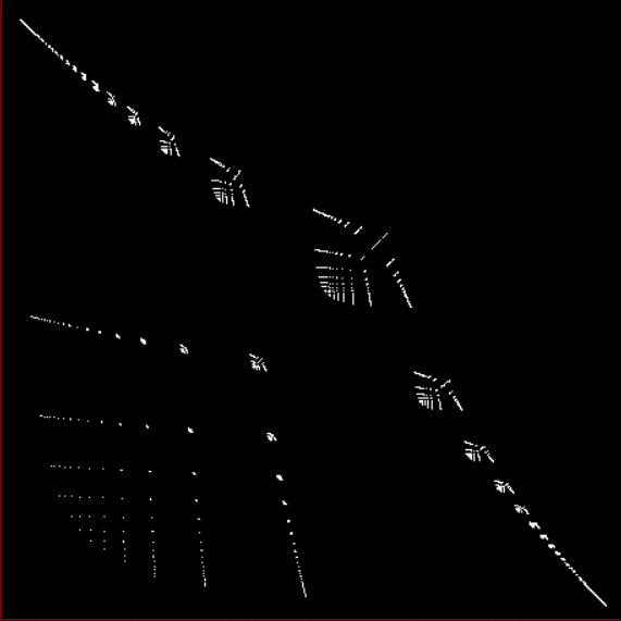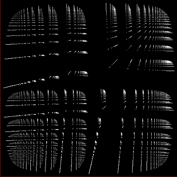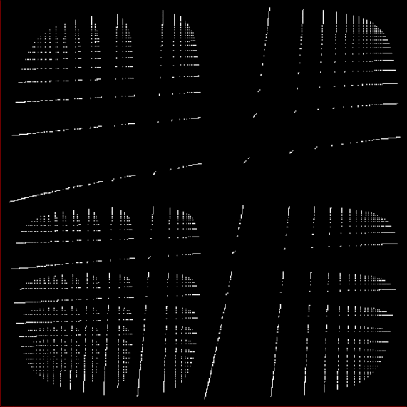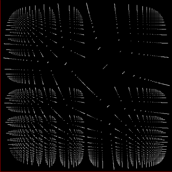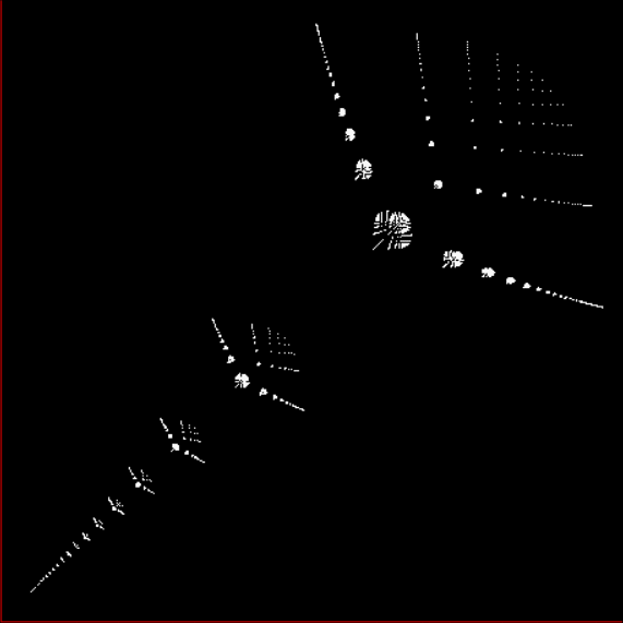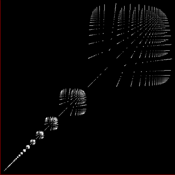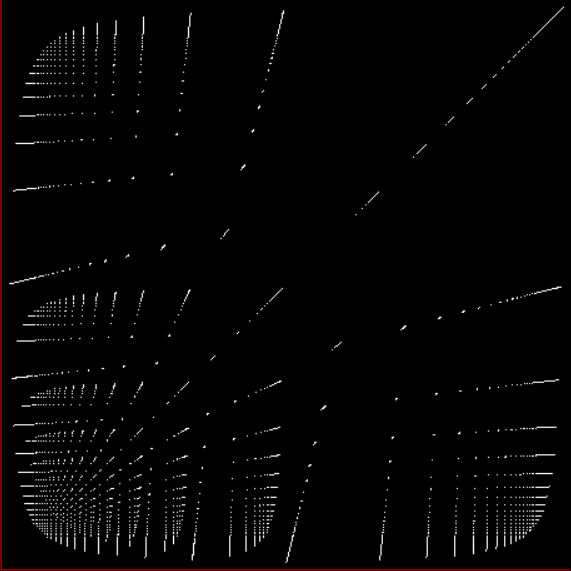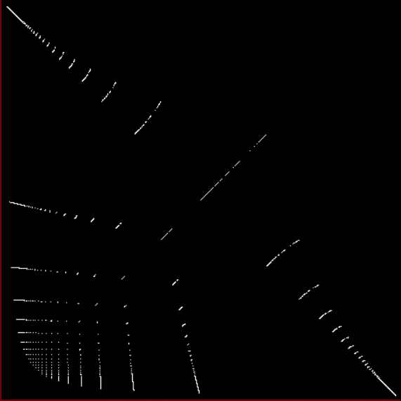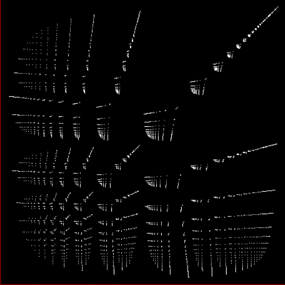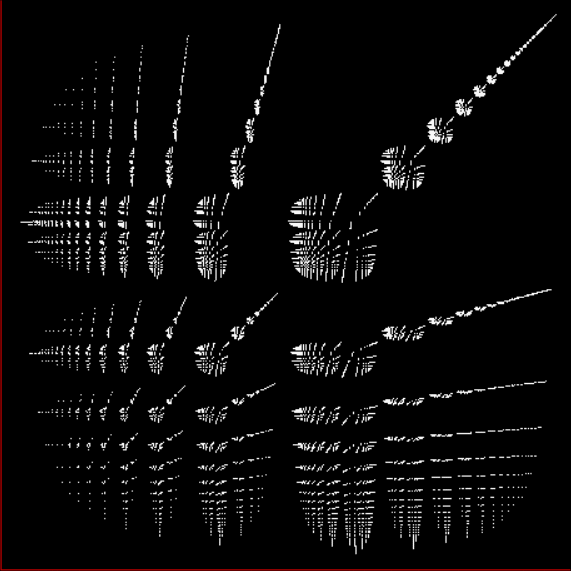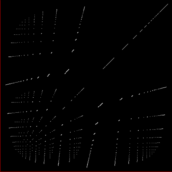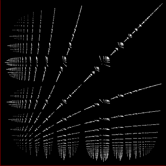 The x axis represents simplified fractions, a/b, when len(cf(a/b)) = 4. The y axis represents the fractions found by applying the perm [1,3,2,4] to contfrac(a/b). That is, the first number of the contfrac stays where it is, the third number moves to position 2, the second number moves to position 3 and the fourth number stays where it is. In short, you simply swap the middle two numbers of contfrac(a/b). Here’s an example:
