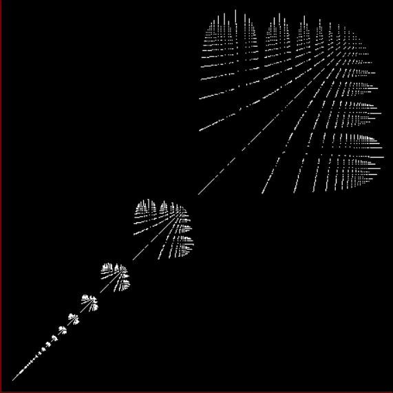 I call that graph a fract-L, because it’s shaped like an L and the x axis represents the simplified fractions 1/2, 1/3, 2/3, 1/4, 3/4, 1/5, 2/5, 3/5…, while the y axis represents the fractions you get by reversing the continued fractions of 1/2, 1/3, 2/3…: