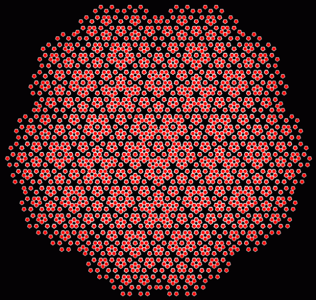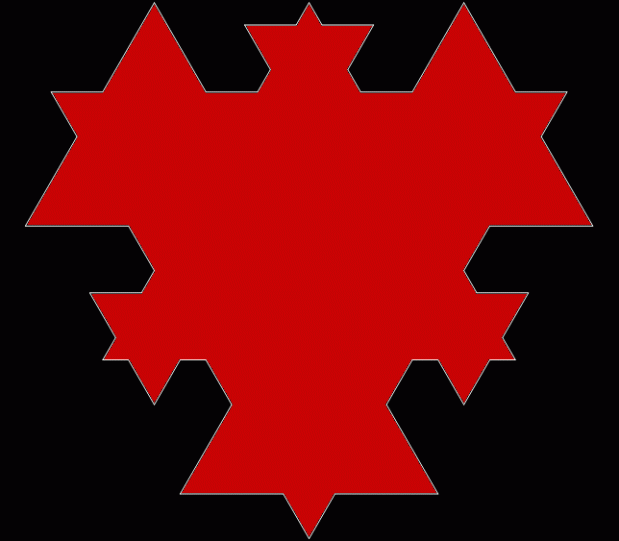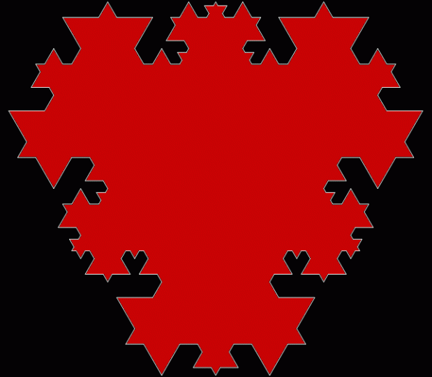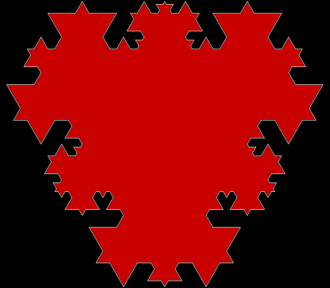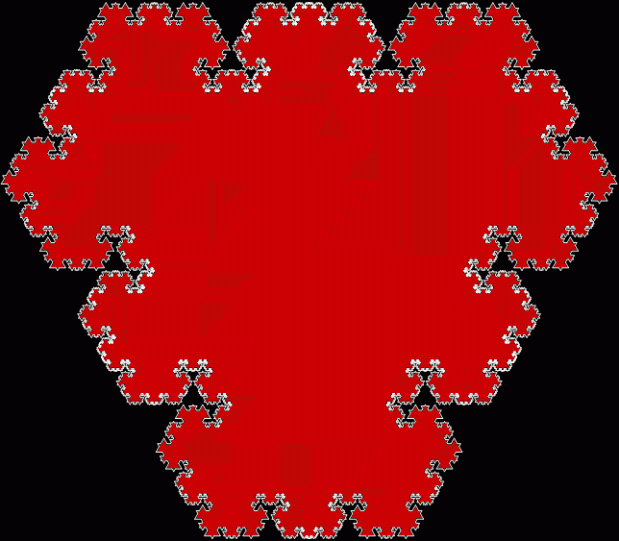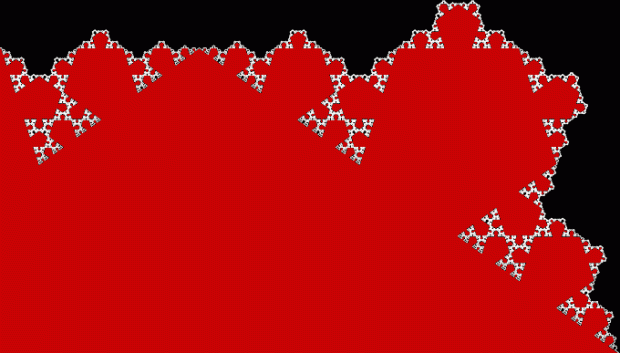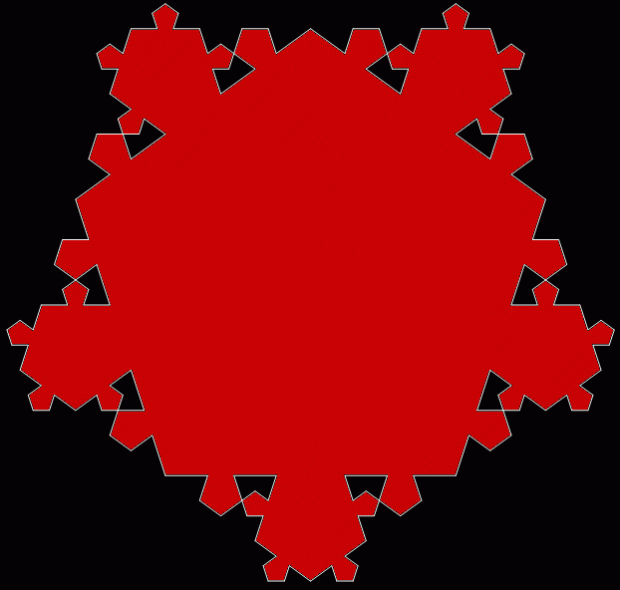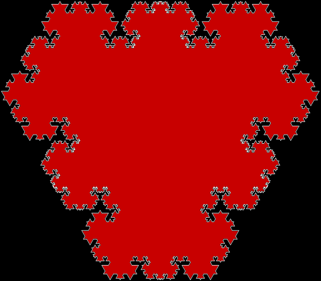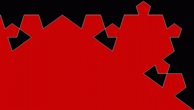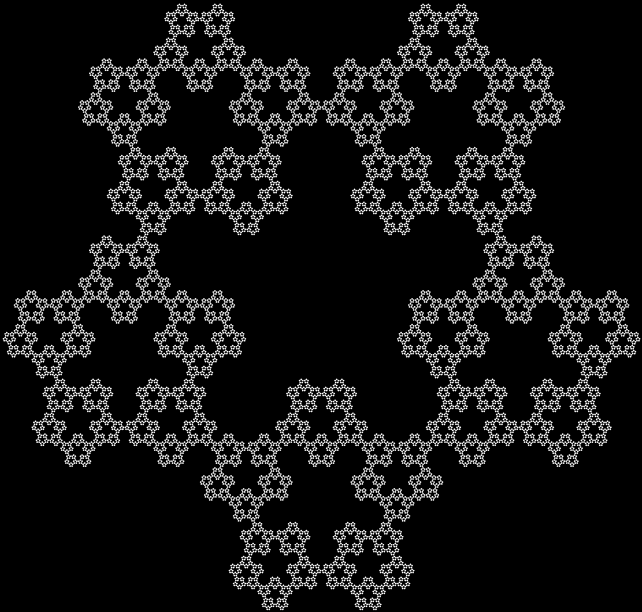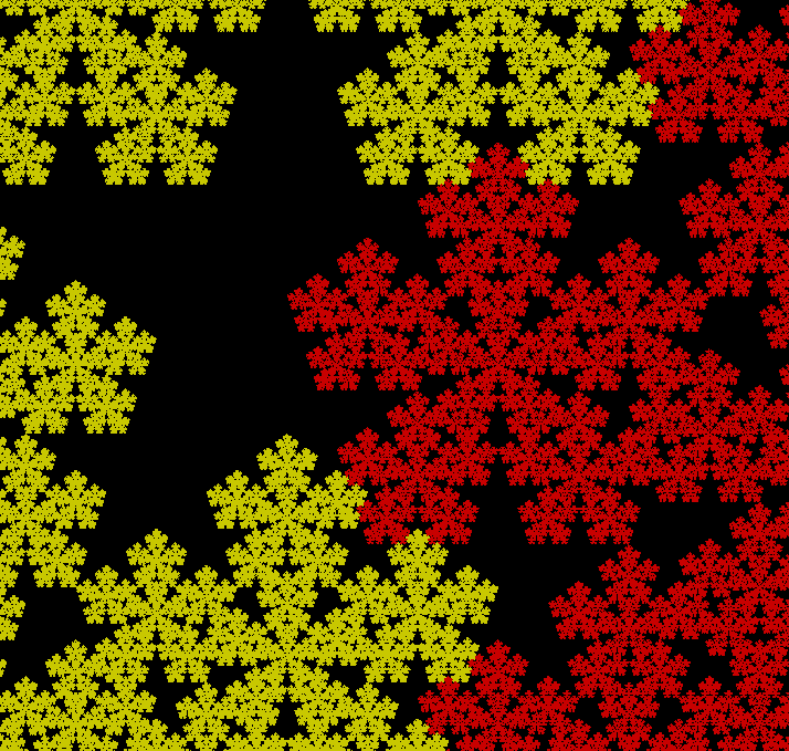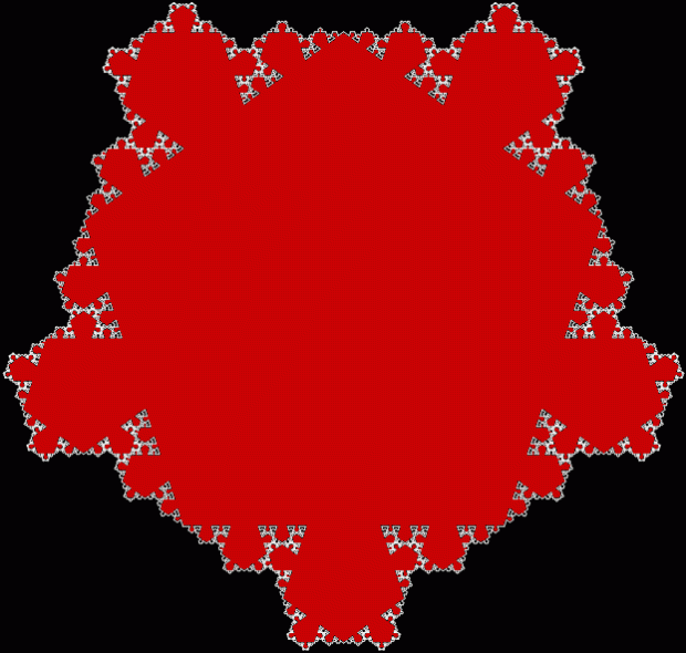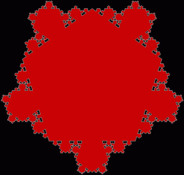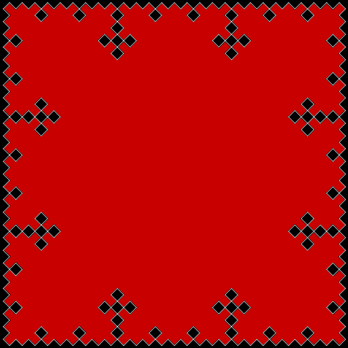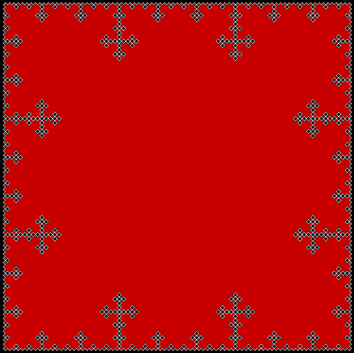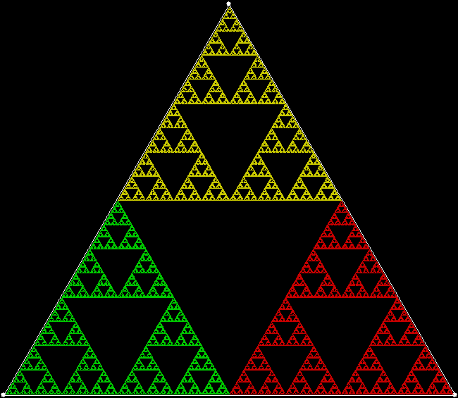 As you can see, it’s not an obvious fractal. But what if the point jumps two-thirds of the way to its target vertex and an extra target is added at the centre of the square? This attractive fractal appears: