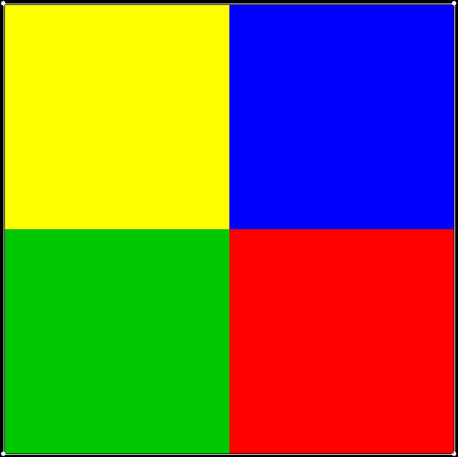 Every time the point jumps half-way towards a particular vertex, its position is marked in a unique colour. The fractal, also known as a Sierpiński triangle, actually represents all possible choices for an indefinite number of jumps. Here’s the same rule applied to a square. There are four vertices, so the point is tracing all possible ways to choose four vertices for an indefinite number of jumps:
