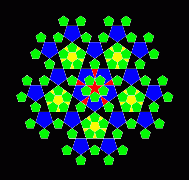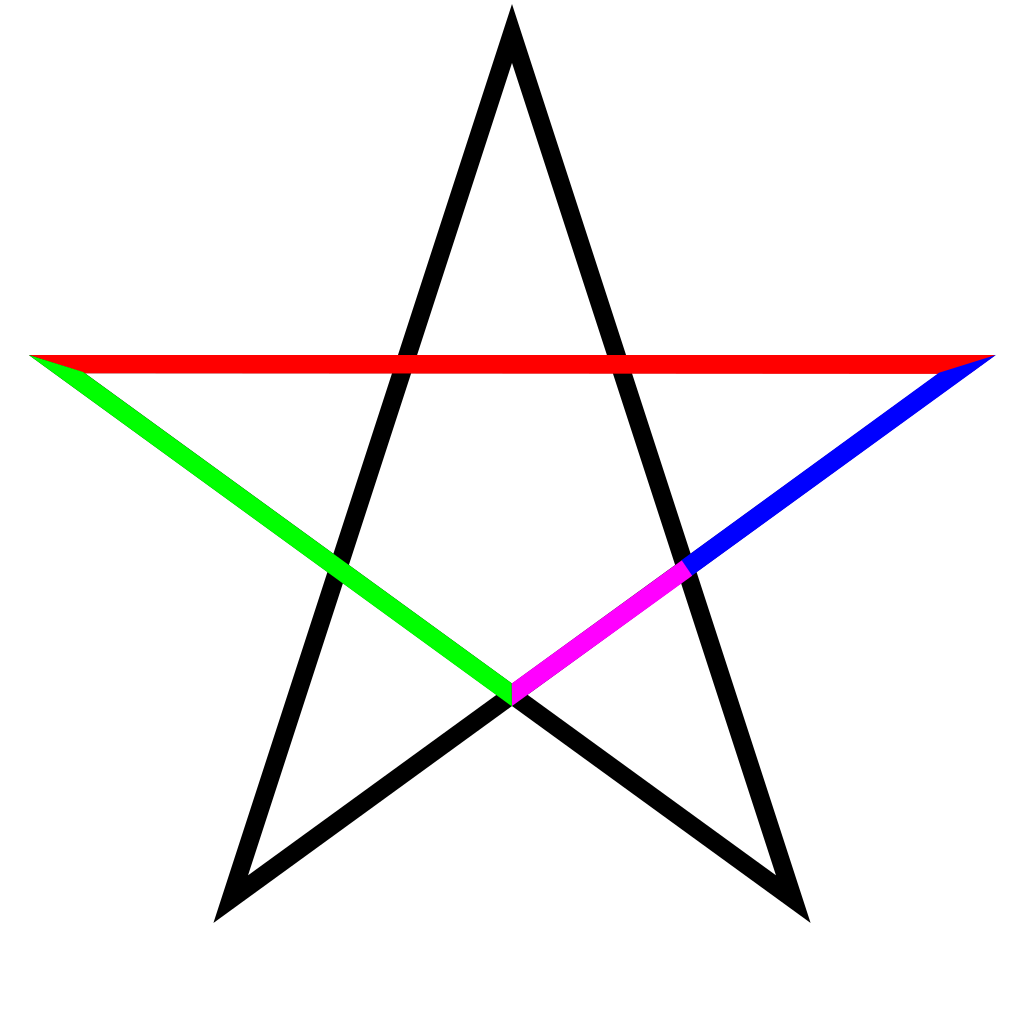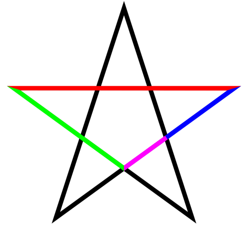 Pentagram with colored lines in the golden ratio (Wikipedia)