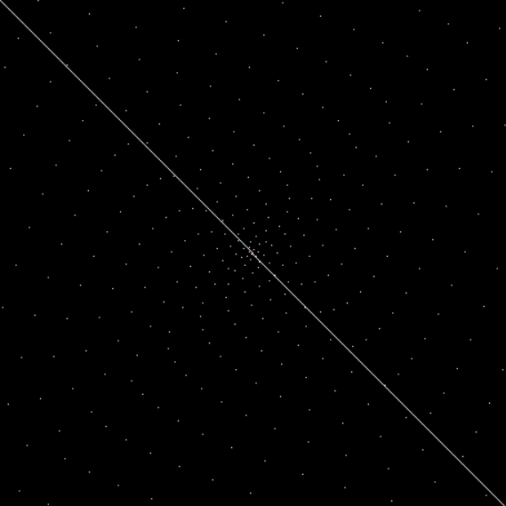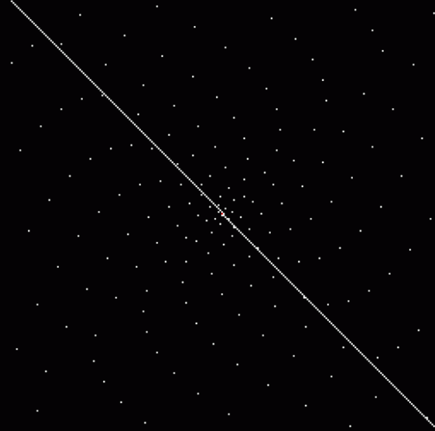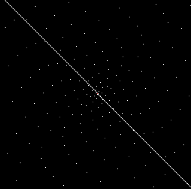 As you can see, eulerphi(n) = n-1 for primes. Now you know what the top line of the Eulerphi graph is. It’s the primes. Here’s a bigger version of the graph:
