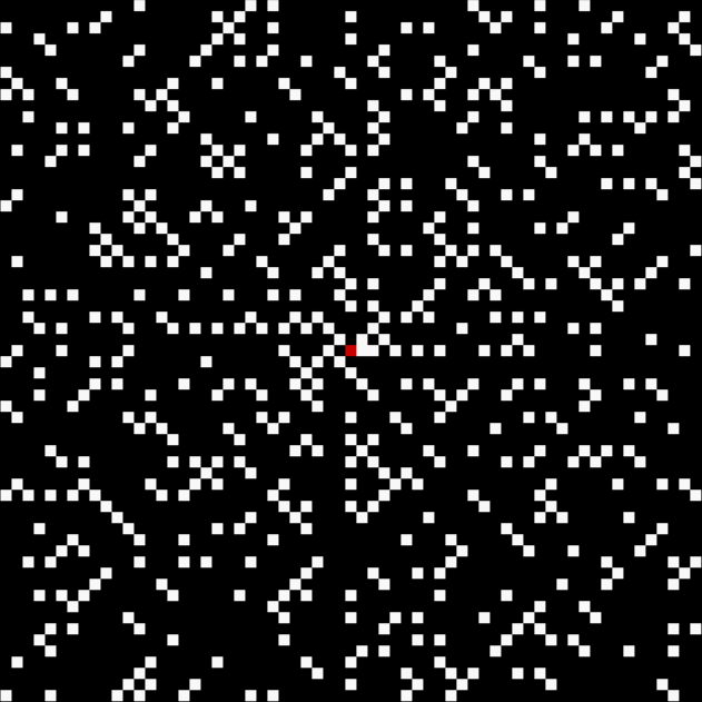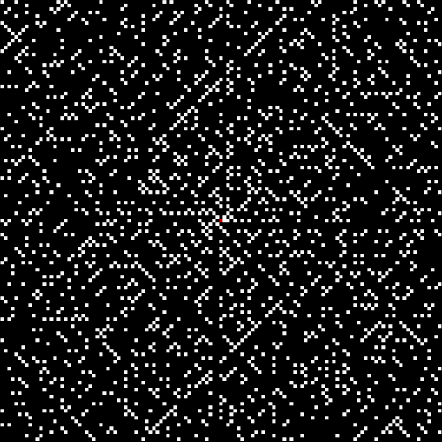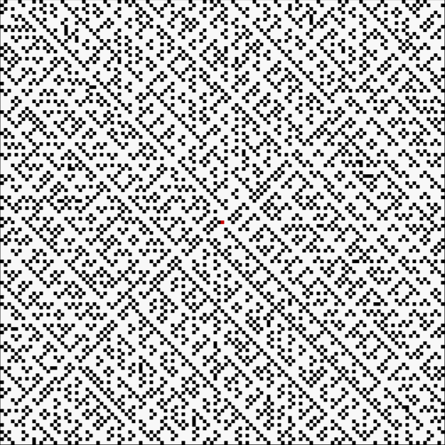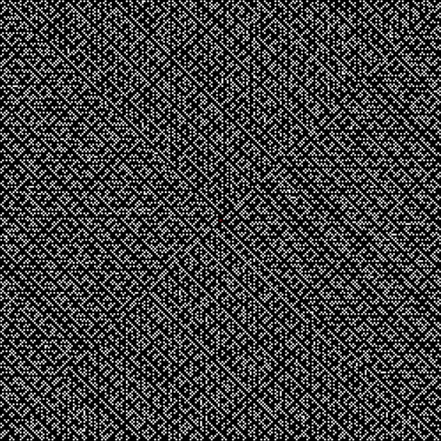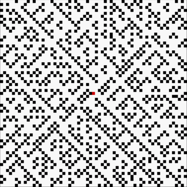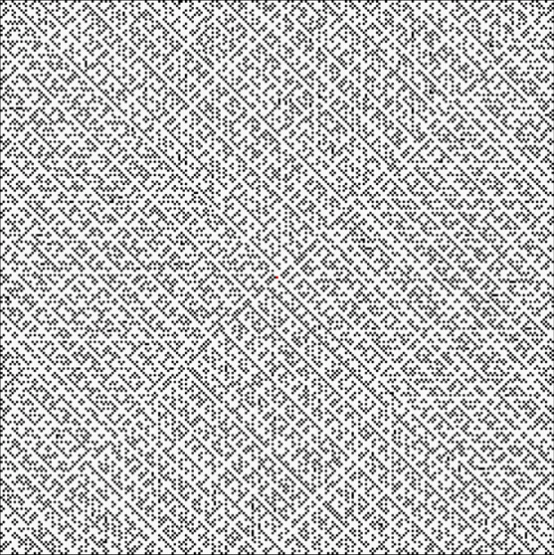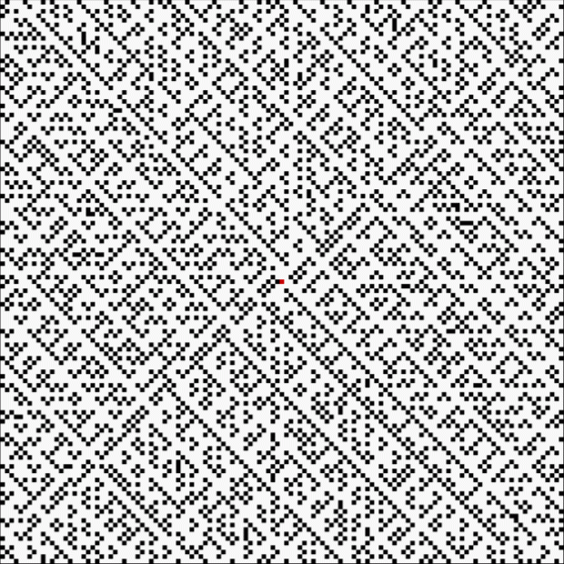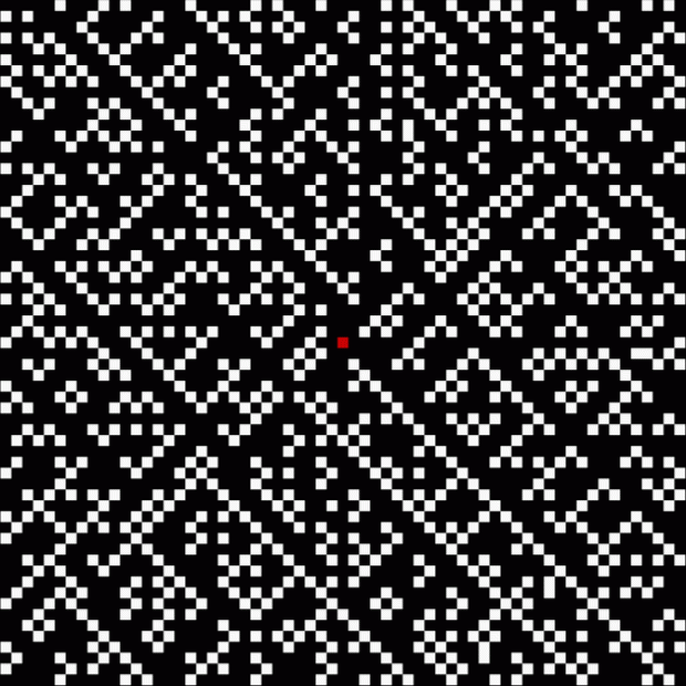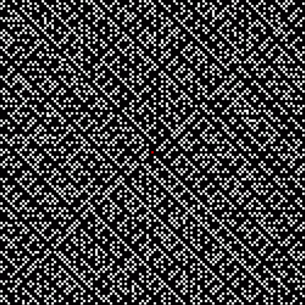 This is the famous Ulam spiral, in which prime numbers are represented on filled squares on a square spiral:
