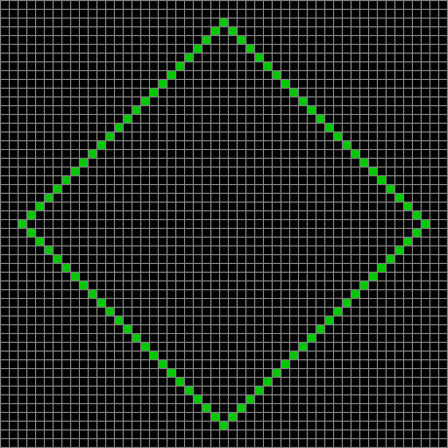 This diamond with sides of 24 blocks evolves towards even more dynamism: