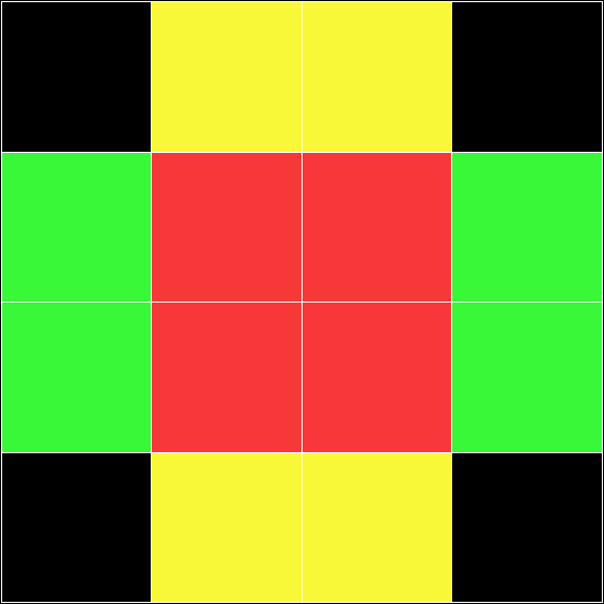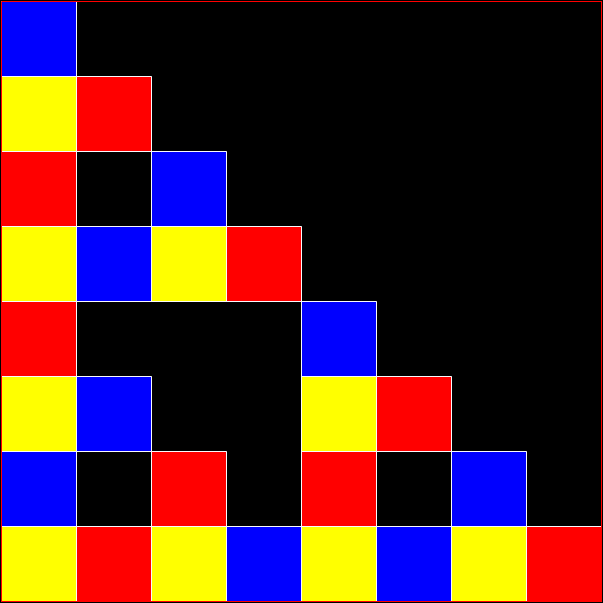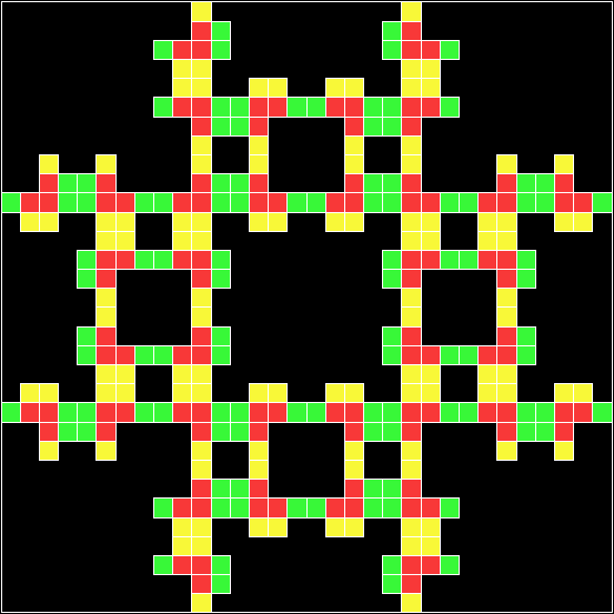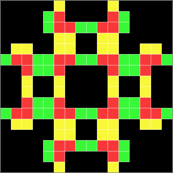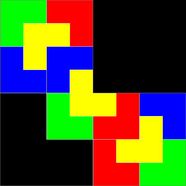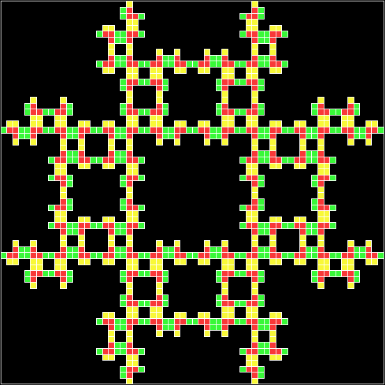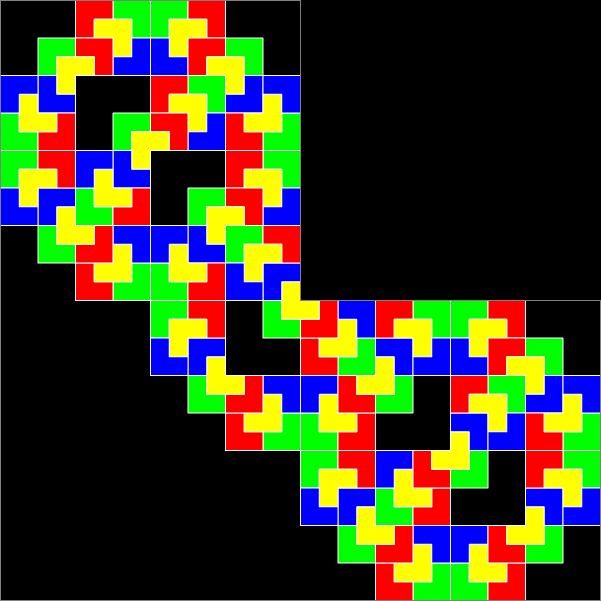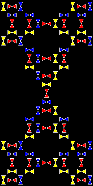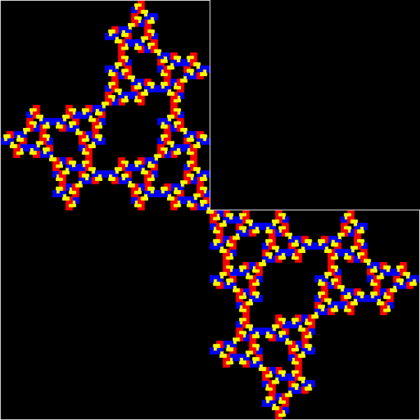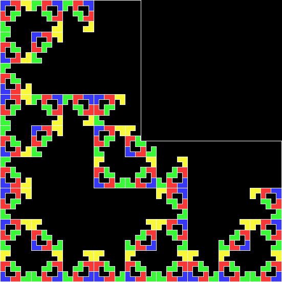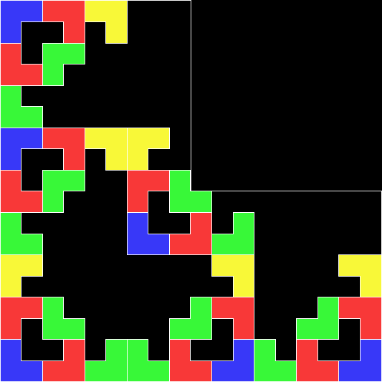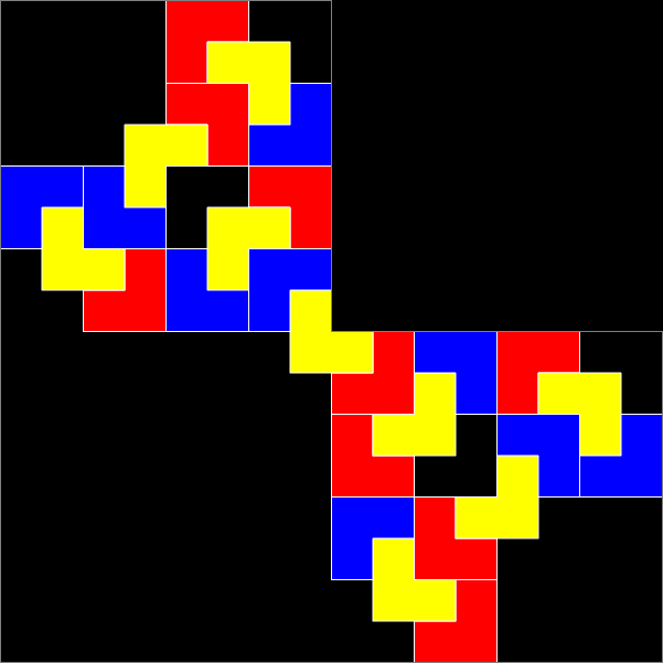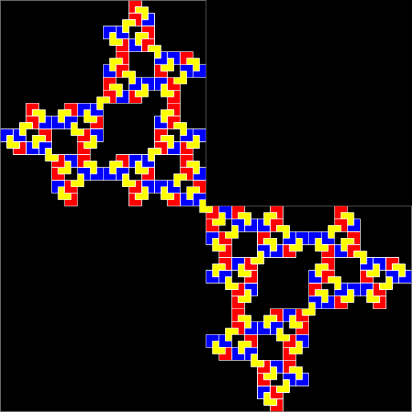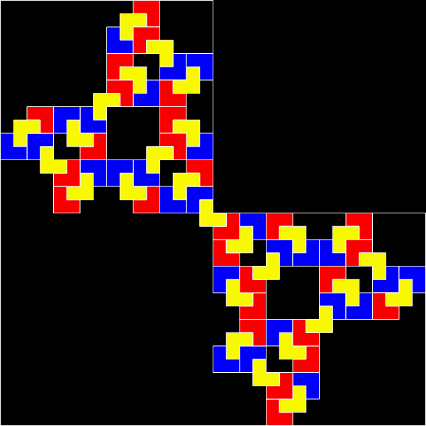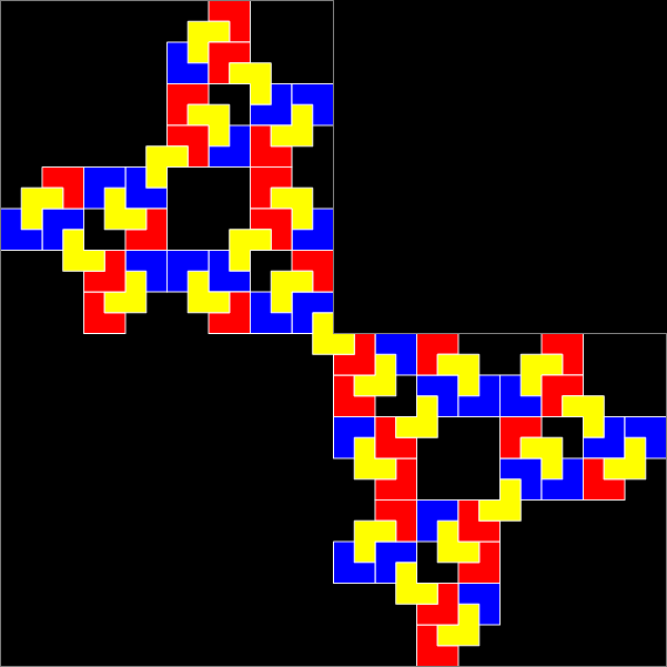 Next I wanted to create an hourglass fractal from a rep-16 L-tromino, so I reasoned like this: