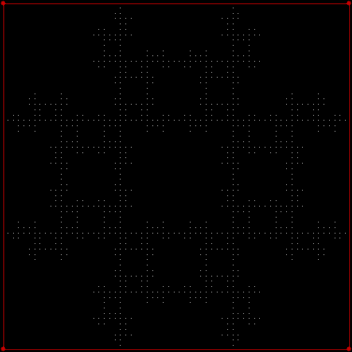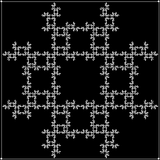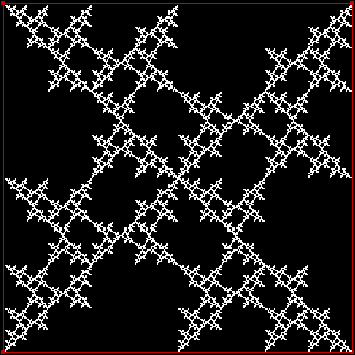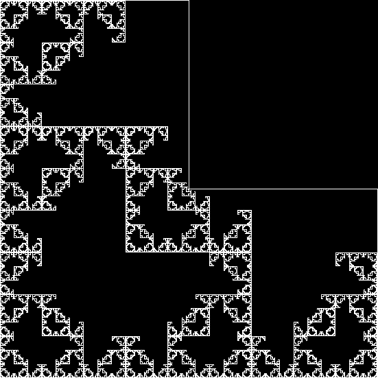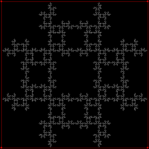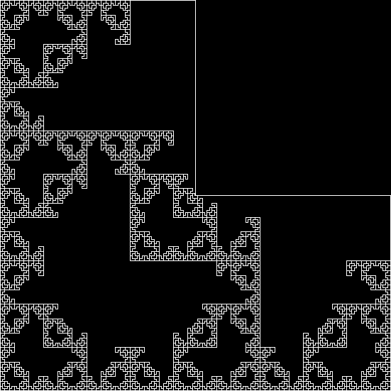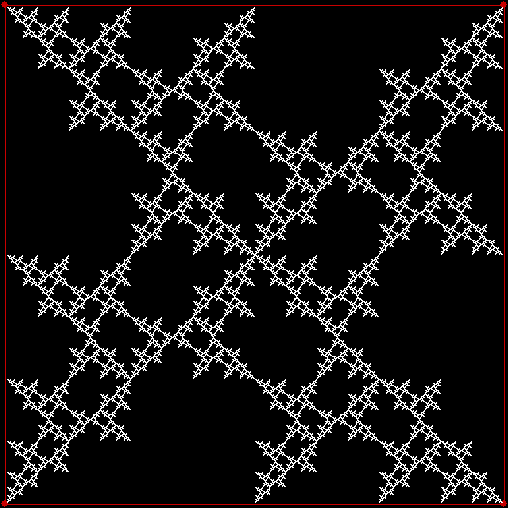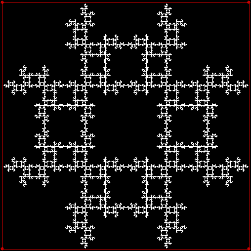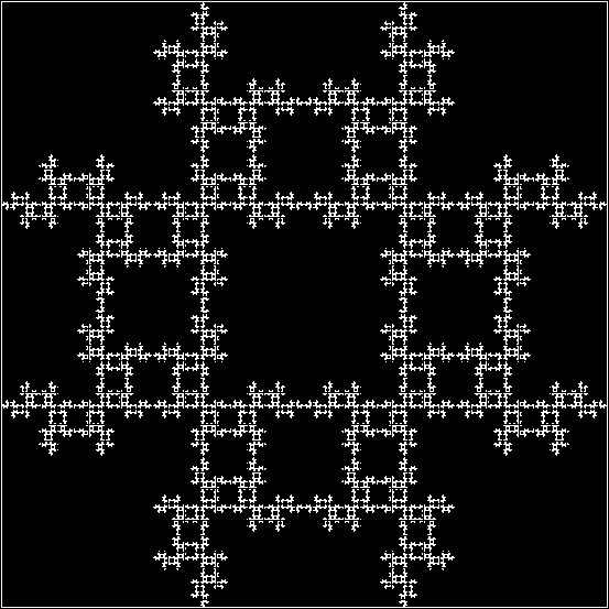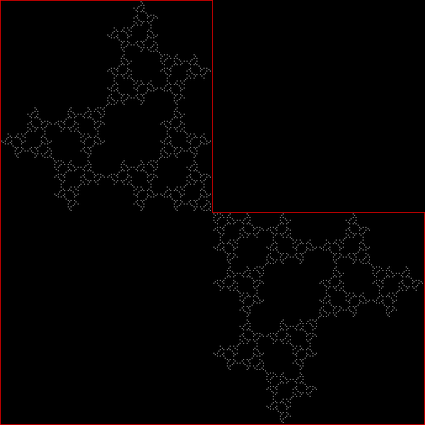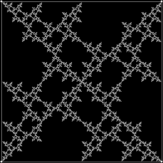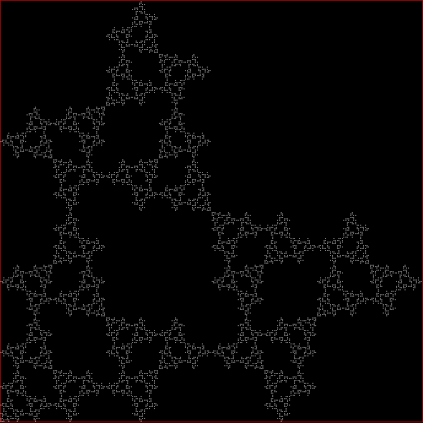If you divide and discard one of the sub-copies, then carry on dividing-and-discarding with the sub-copies and sub-sub-copies and sub-sub-sub-copies, you get the fractal seen below. Alas, it’s not a very attractive or interesting fractal: