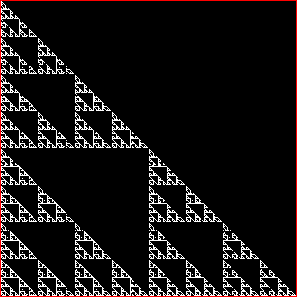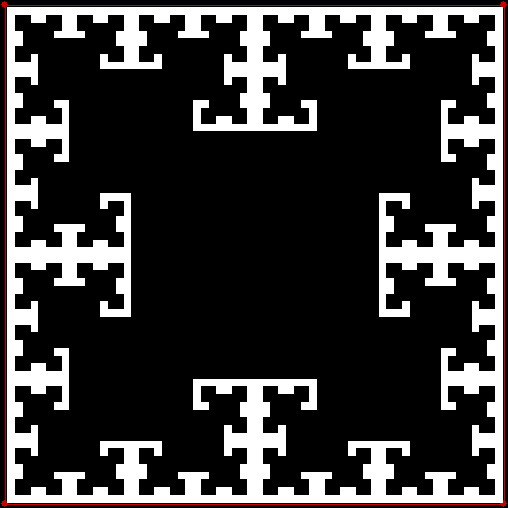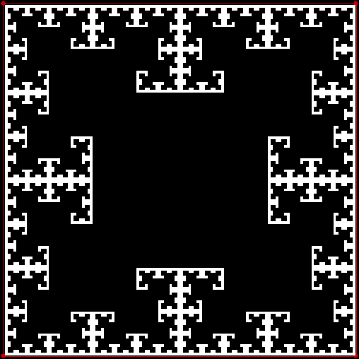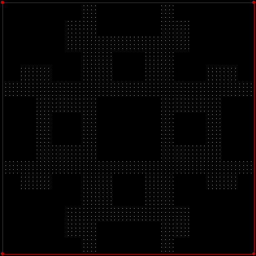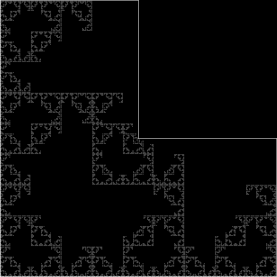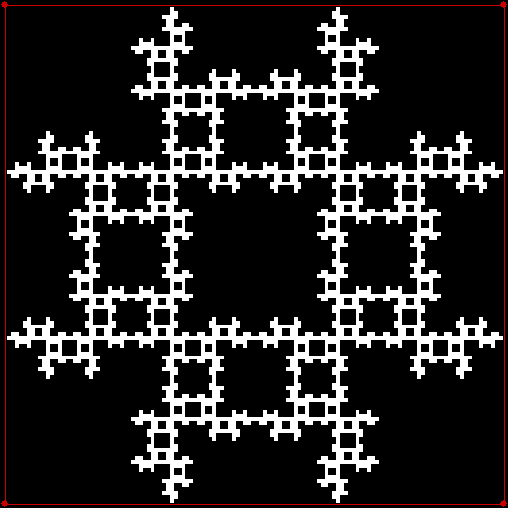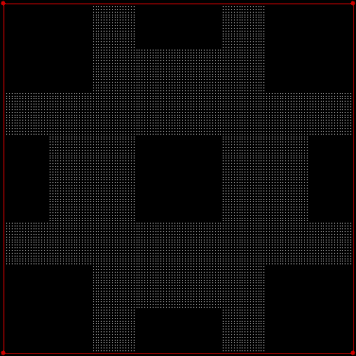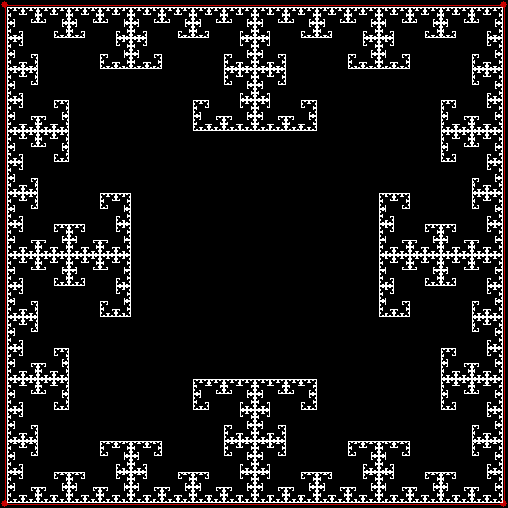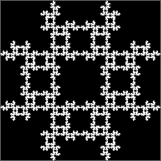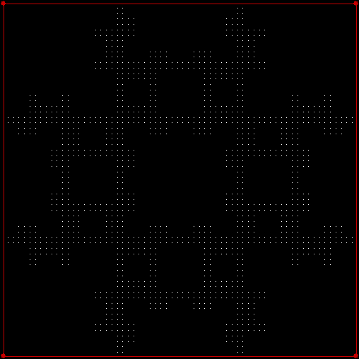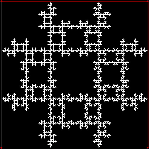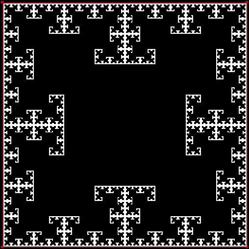 If you divide and discard one of the sub-copies, then carry on dividing-and-discarding with the sub-copies and sub-sub-copies and sub-sub-sub-copies, you get the fractal seen below. Alas, it’s not a very attractive or interesting fractal: