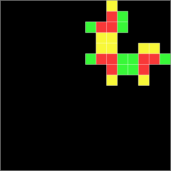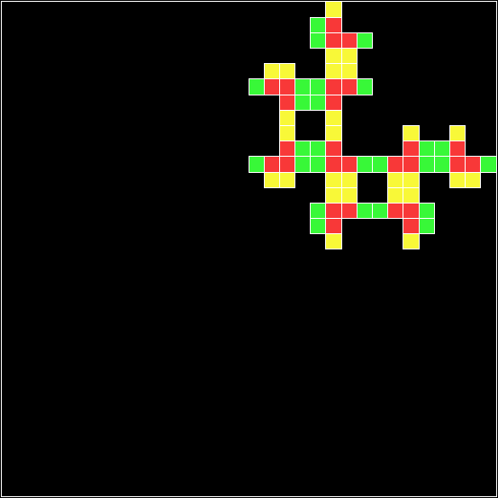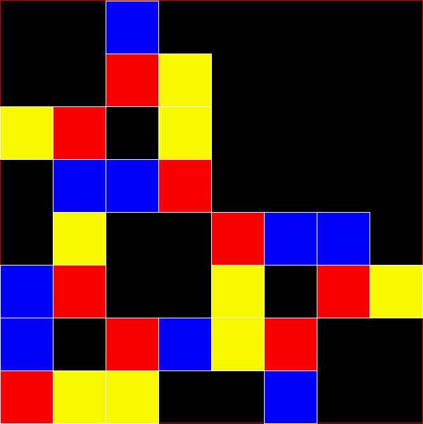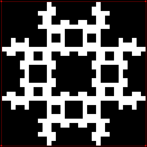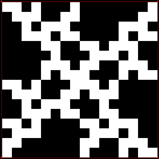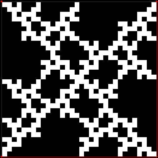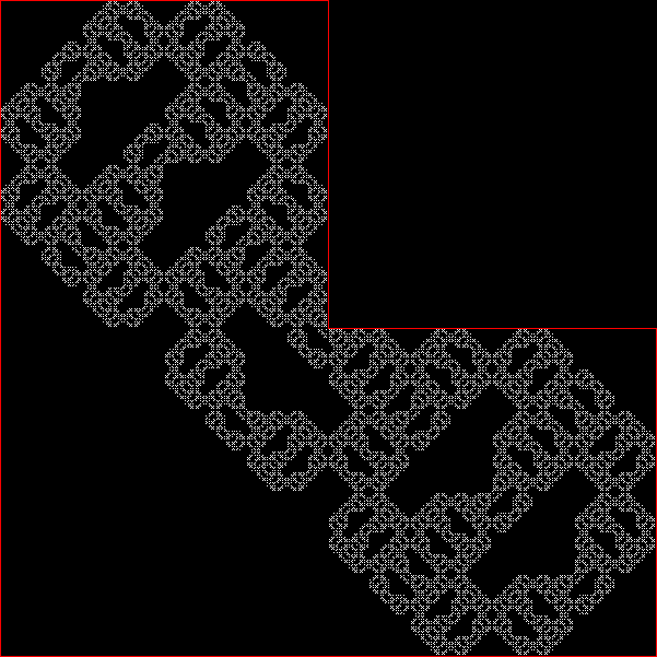 So I set up the rep-16 L-tromino with twelve sub-copies in the right pattern and began dividing-and-discarding: