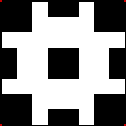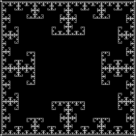 Now I’ve discovered a new way to create these fractals. You take a filled square, divide it into smaller squares, then remove some of them in a systematic way. Then you do the same to the smaller squares that remain. For fractal #1, you do this: