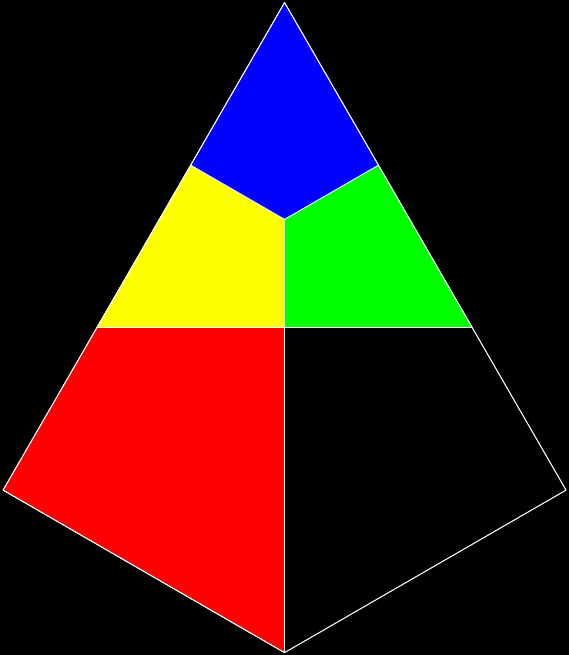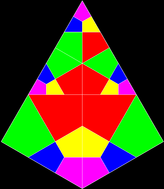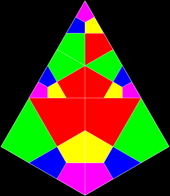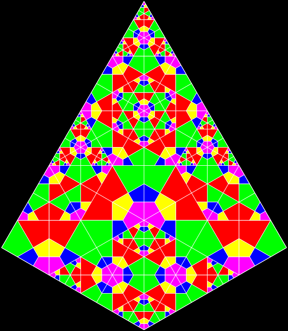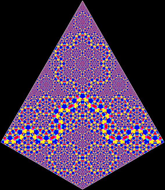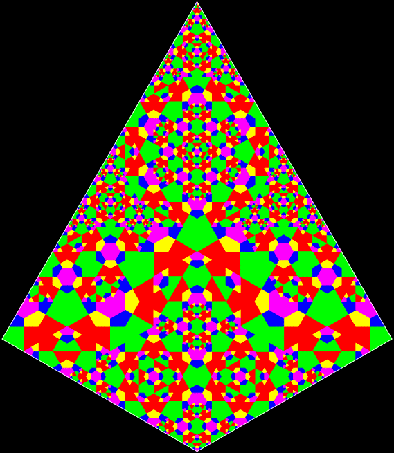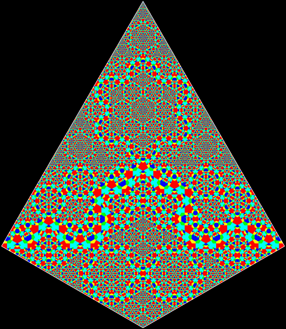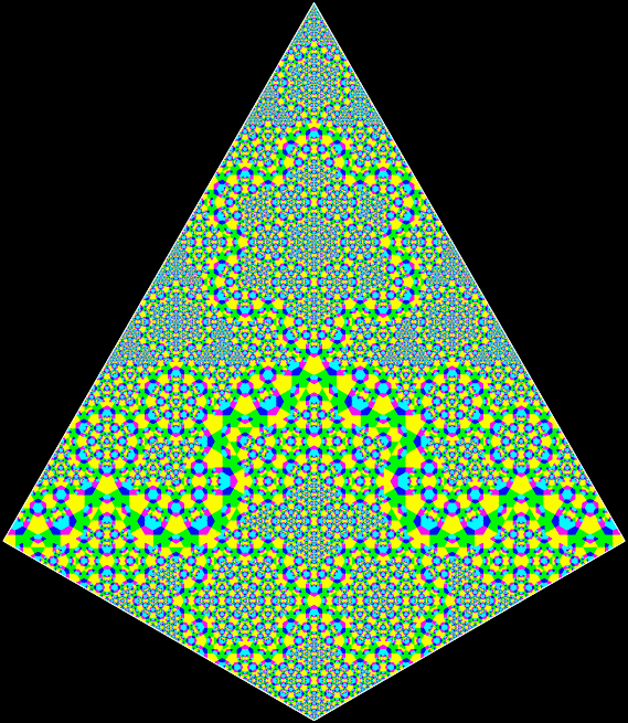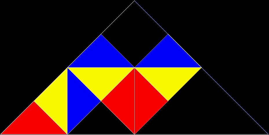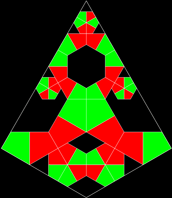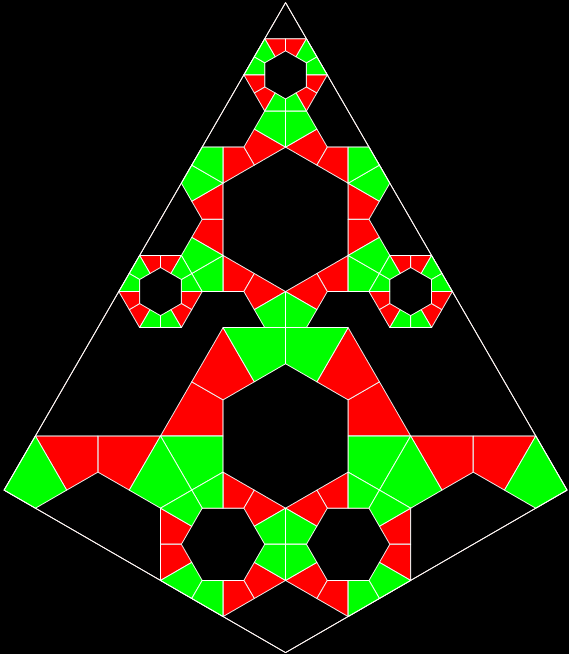 The triangle is a rep-tile — it’s tiled with repeating copies of itself. In this case, it’s a rep-9 triangle. Each of the nine smaller triangles can obviously be divided in their turn:
