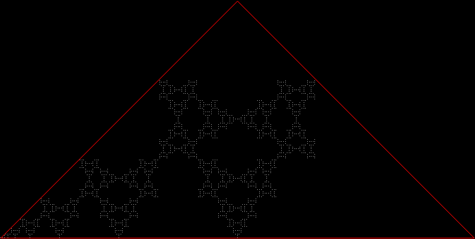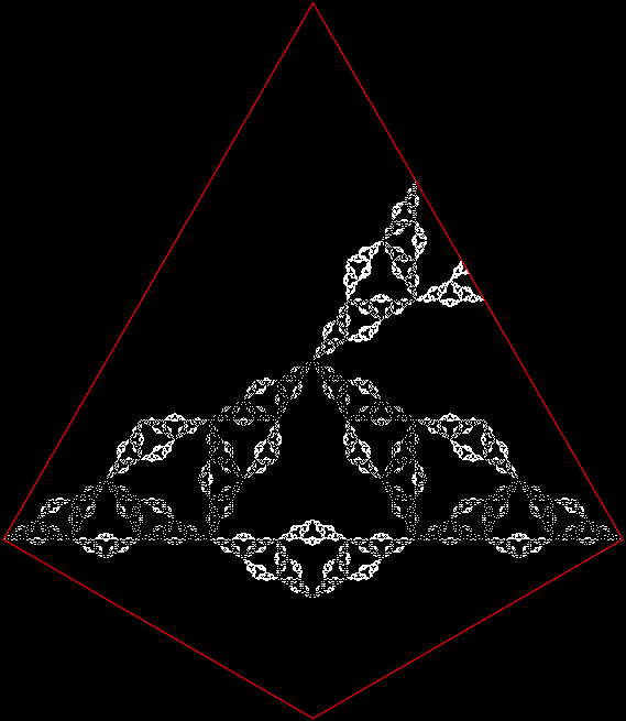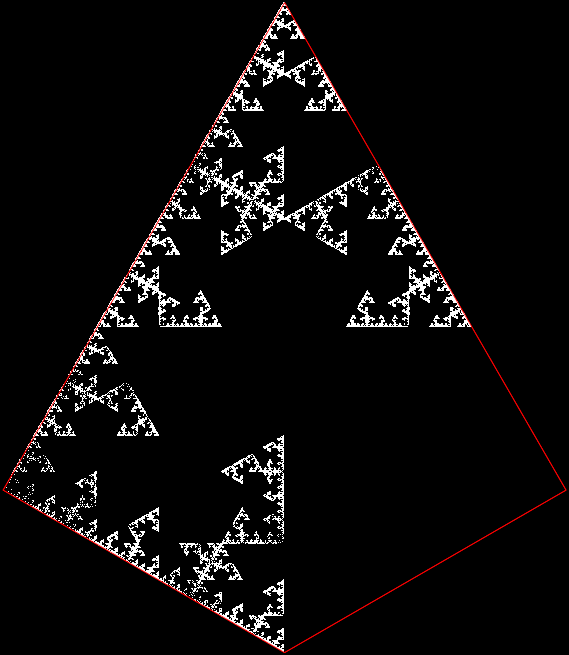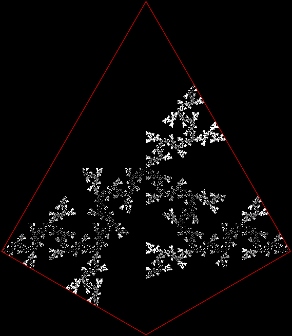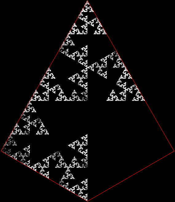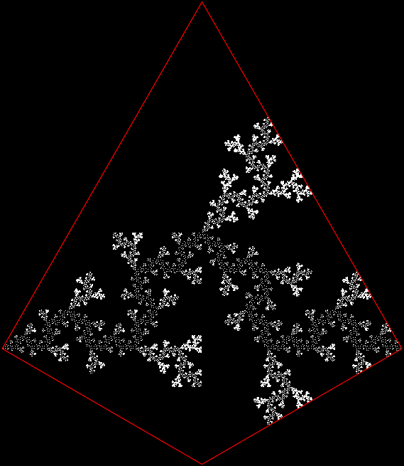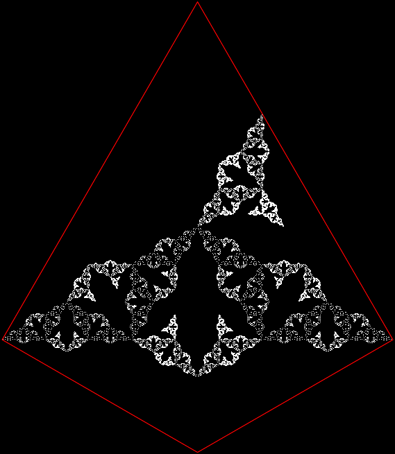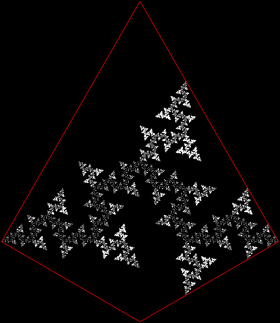However, if the point is banned from jumping towards the same vertex twice or more in a row, an interesting fractal appears: