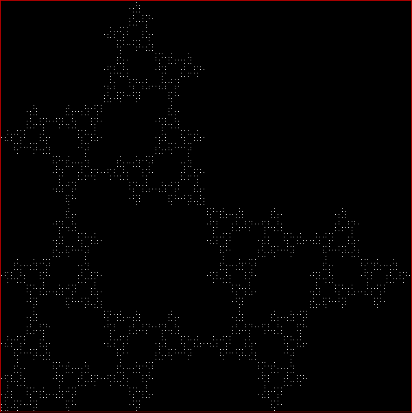 Discovering something that’s new to you in recreational maths is good. But so is re-discovering it by a different route. I’ve long been passionate about what happens when a point is allowed to jump repeatedly halfway towards the randomly chosen vertices of a square. If the point can choose any vertex any number of times, the interior of the square fills slowly and completely with points, like this: