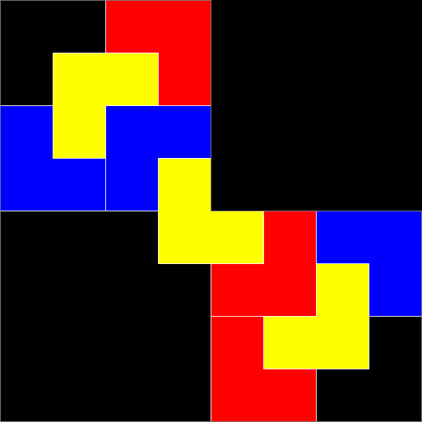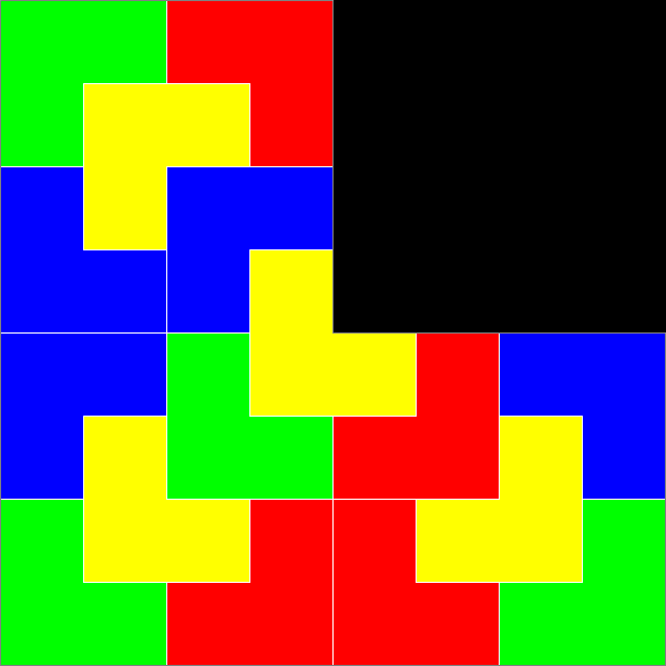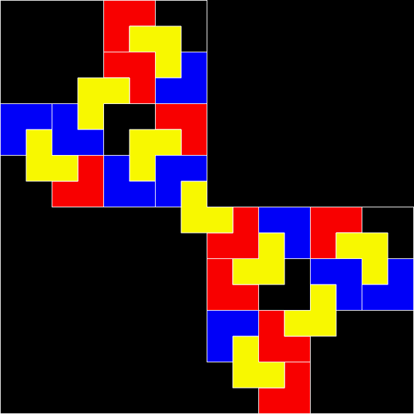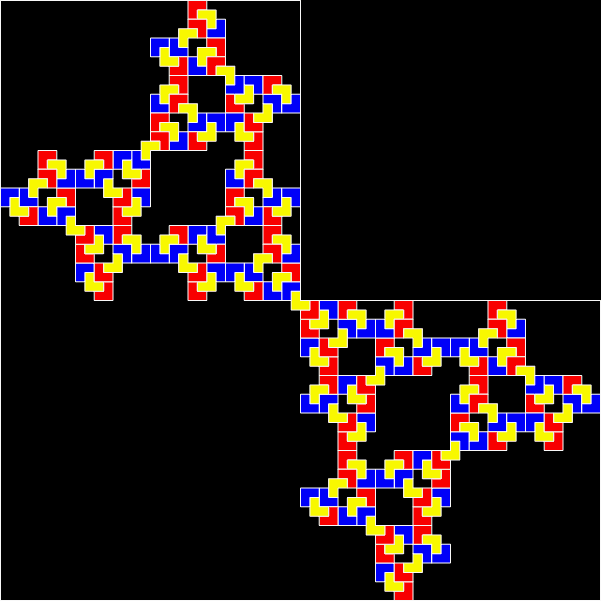 Pre-previously on Overlord-in-terms-of-the-Über-Feral, I’ve looked at intensively interrogated issues around the L-triomino, a shape created from three squares that can be divided into four copies of itself: