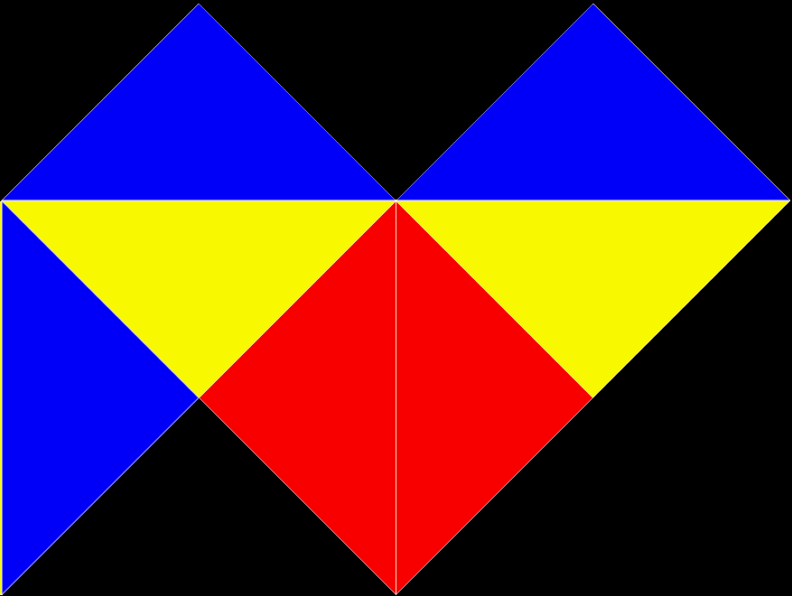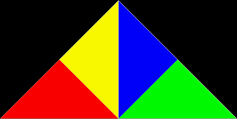 An equilateral triangle is a rep-tile, because it can be tiled completely with smaller copies of itself. Here it is as a rep-4 rep-tile, tiled with four smaller copies of itself: