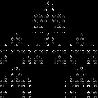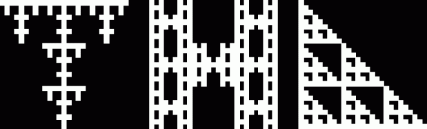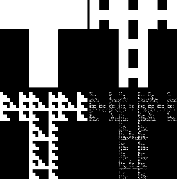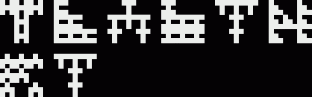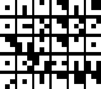 The above is stage 1 of the fractalphabet, when it isn’t actually a fractal alphabet at all. But if each filled square of the letter “A”, say, is replaced by the letter itself, the “A” turns into a fractal, like this: